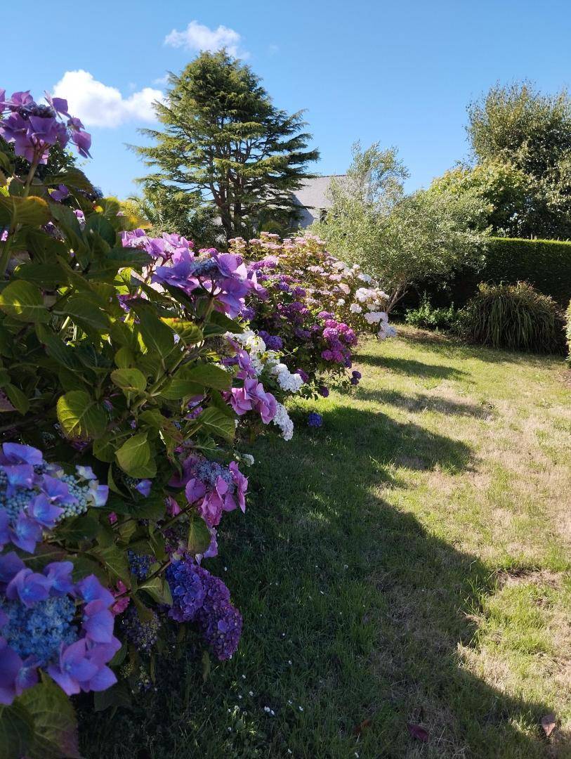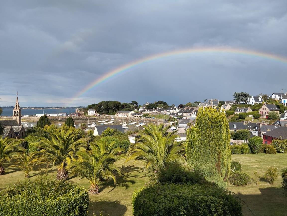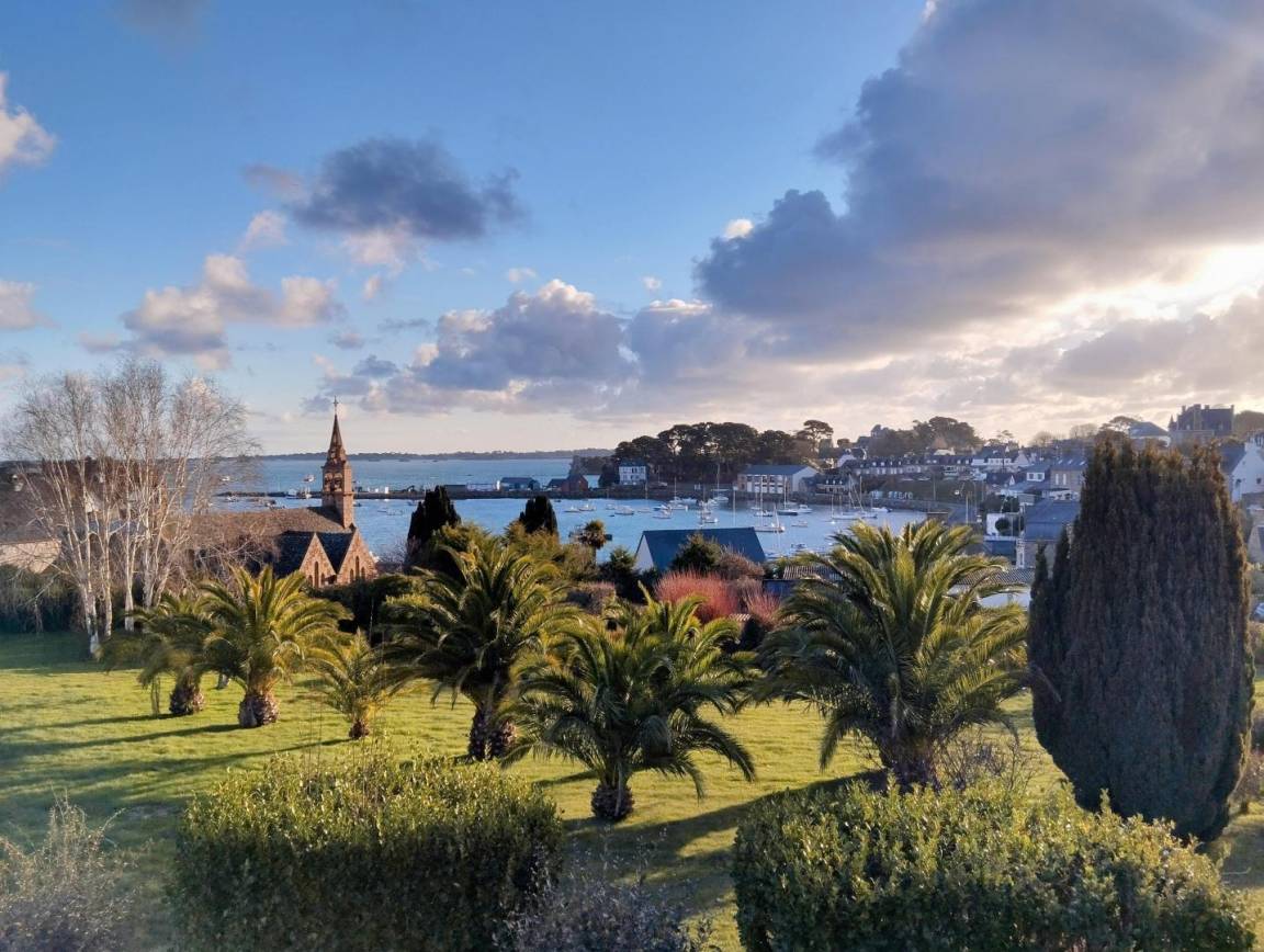 Sein weitläufiger 850 m² großer Garten bietet einen atemberaubenden Blick auf den Hafen von Loguivy-de-la-Mer und die Insel Bréhat.