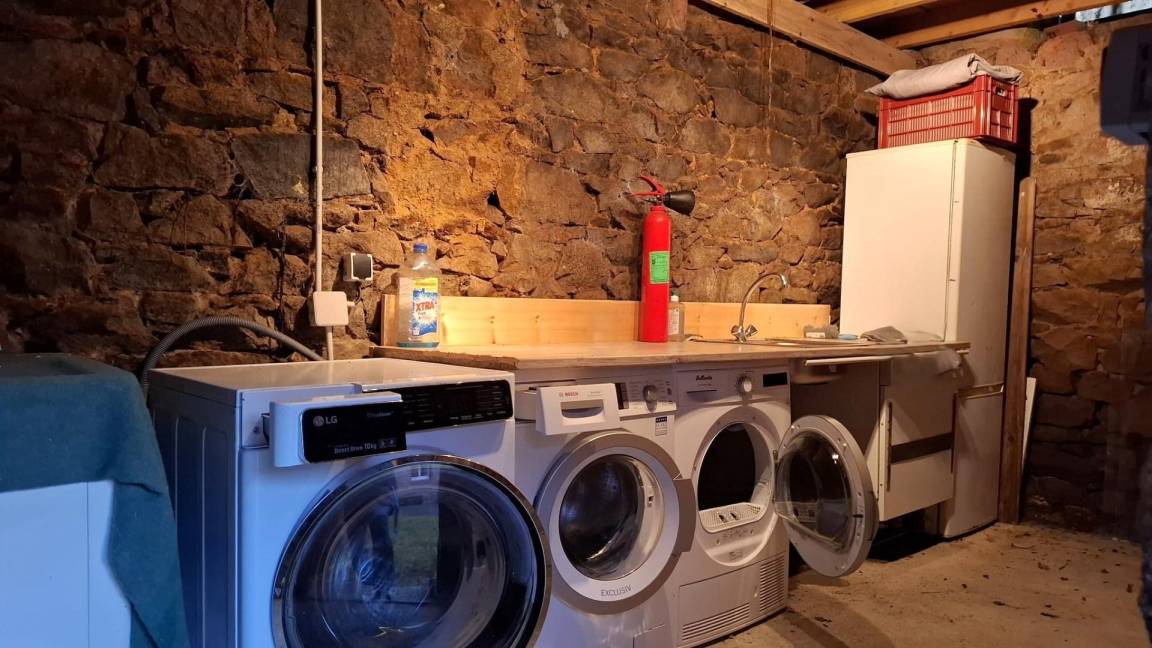 Im gegenüberliegenden Schuppen im Innenhof befinden sich Waschküche/Abstellraum/Vorratskammer. Ein großer, gepflasterter Hof von 280 m² bietet Platz zum Parken.