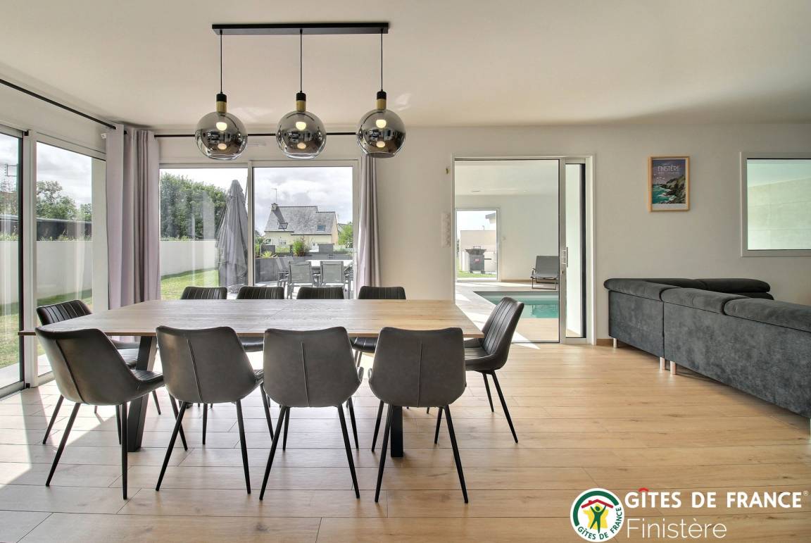 „Superbe maison, de très belles prestations. Livret accueil très pratique et très bien fait. Un plus pour le propriétaire concernant les échanges avant d'arriver et pour son accueil. Je recommande vivement.“