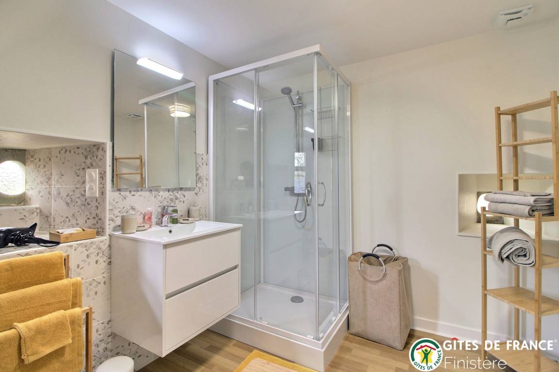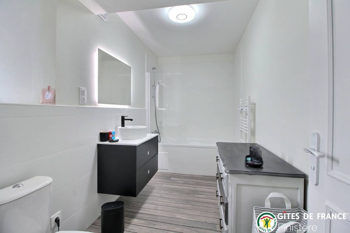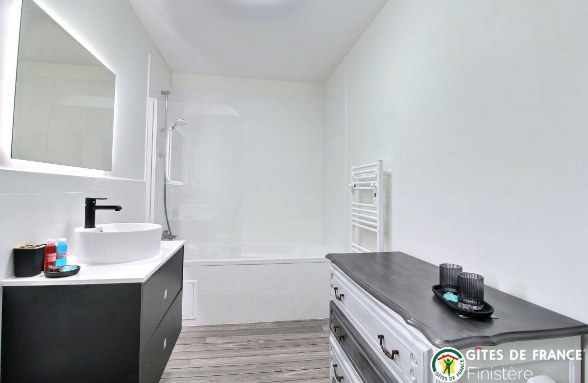 „Un lieu un peu retiré mais plein de charme et très confortable. Une vraie surprise et une localisation très interessante proche de plages comme on n’en fait plus: Les Bahamas en Bretagne avec quasi personne! Maison très bien équipée, impeccable et hôte très attentionnée. À recommander chaudement!“