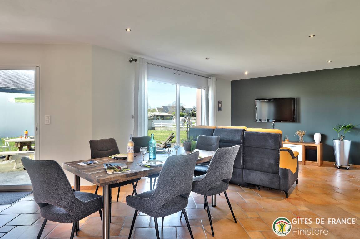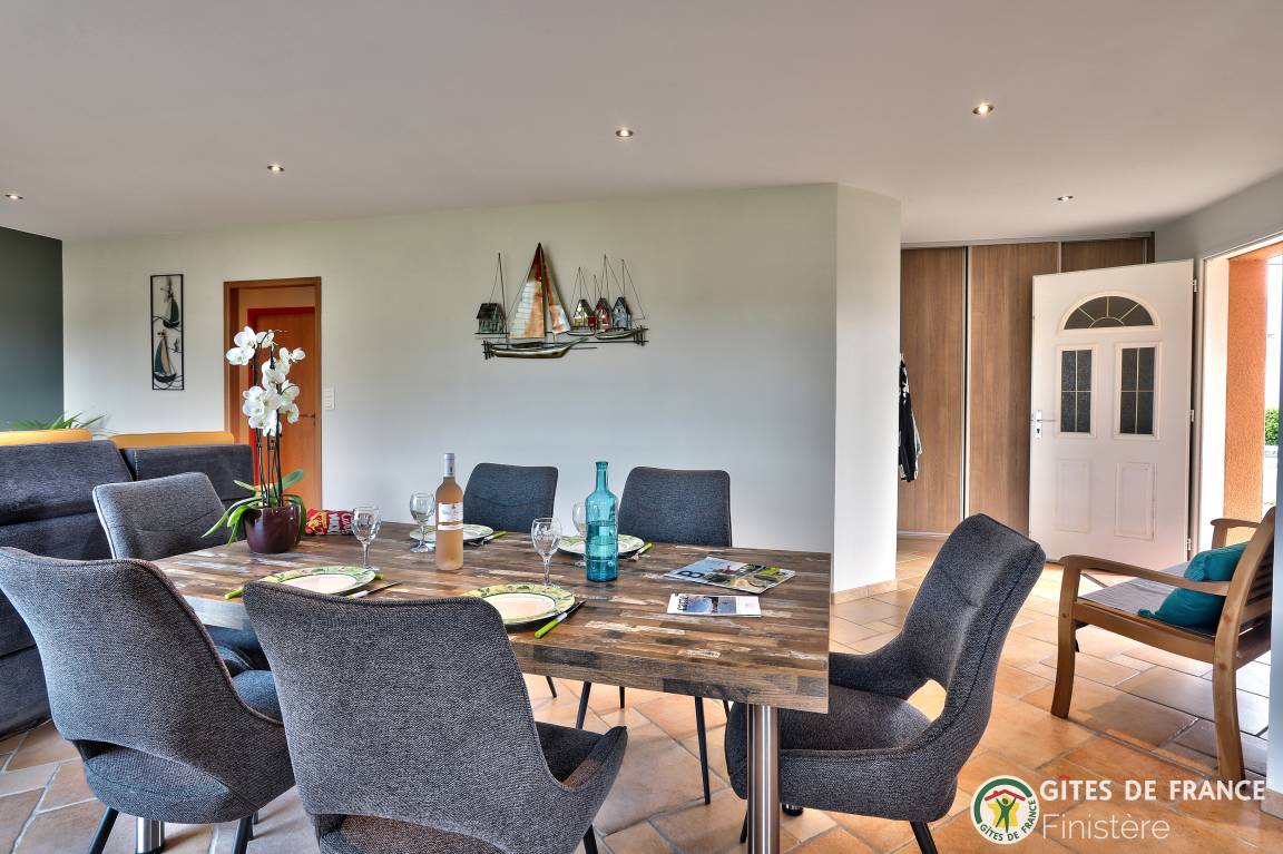 „Maison très agréable à vivre, spacieuse et lumineuse elle est proche de la mer, de belles plages et du GR 34.Nous avons beaucoup aimé cette région du Finistère. Merci au propriétaire pour ses attentions gourmandes et sa confiance.“