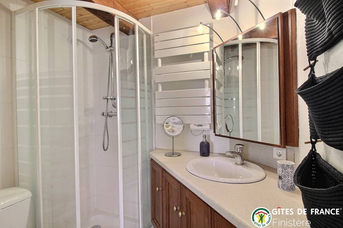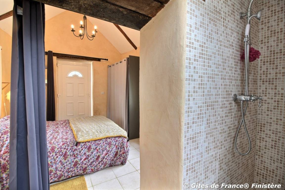 „Déjà nous avons été super bien reçus par les propriétaires qui sont très sympas. La grande chambre avec toilettes et douche à l ' italienne est à part de la pièce de vie, ça demande un peu d 'organisation mais original et ça change du quotidien.On a adoré le " petit coin " à l ' extérieur avec la table basse pour prendre un verre. On a adoré aussi bien sûr le village de PLOUDIRY, la ville de LANDERNEAU et toute la côte des ABERS avec des plages de sable blanc et de l 'eau claire. Un super séjour.“