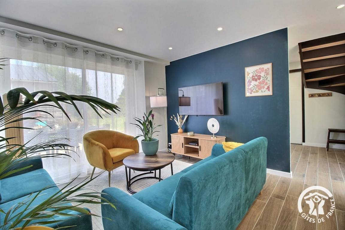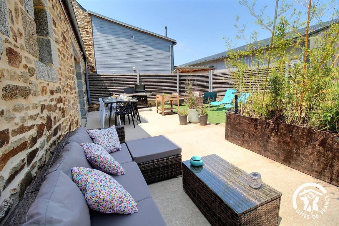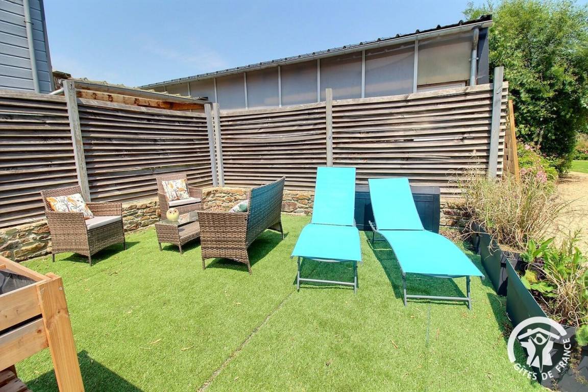 „Gîte très confortable et aménagé avec goût.Jardin paysagé et terrasses très agréables..Accueil très très chaleureux. L'environnement de nature avec quelques chèvres et un petit chiot nous a ravi ! Les commerces sont très près et les balades à pieds autour du gîte sont accessibles, même pour des seniors ! Merciiiiiiiiiiii ! pour ce séjour !“