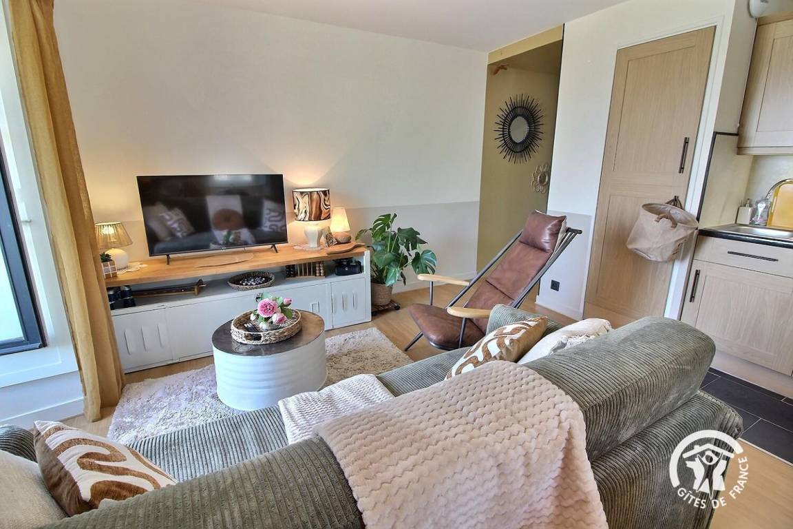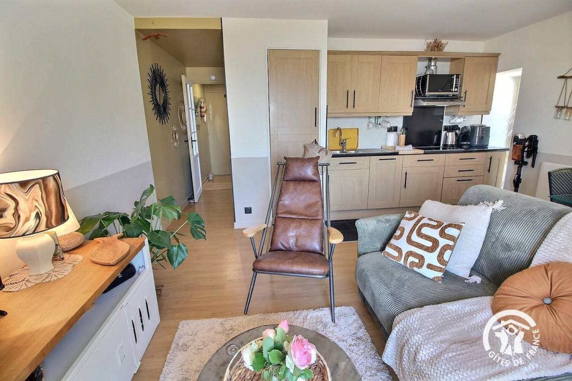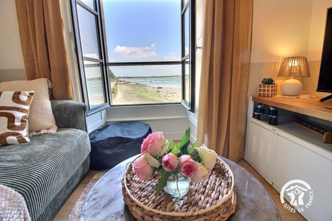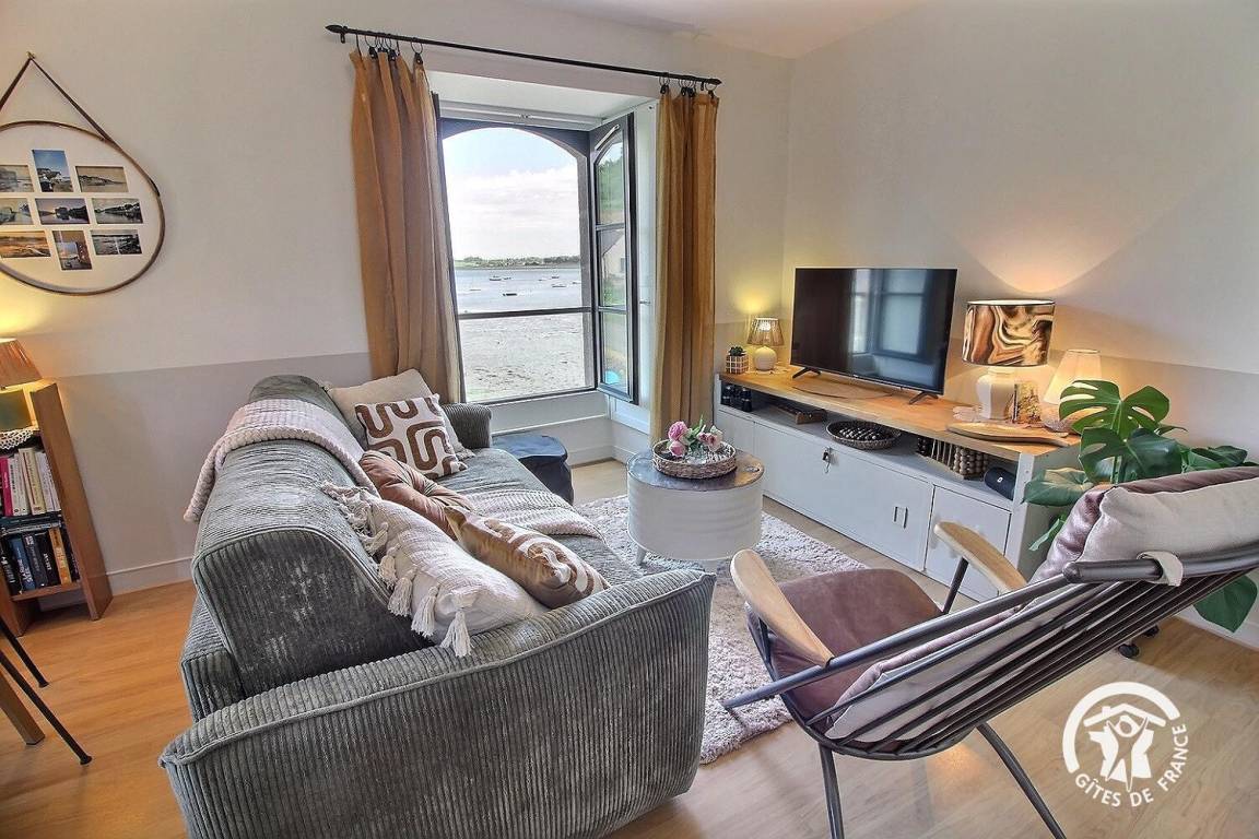 • Ein Wohnzimmer mit voll ausgestatteter Küche, Essbereich und Sitzecke mit Meerblick (Rance-Mündung)