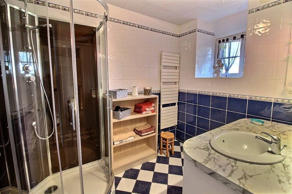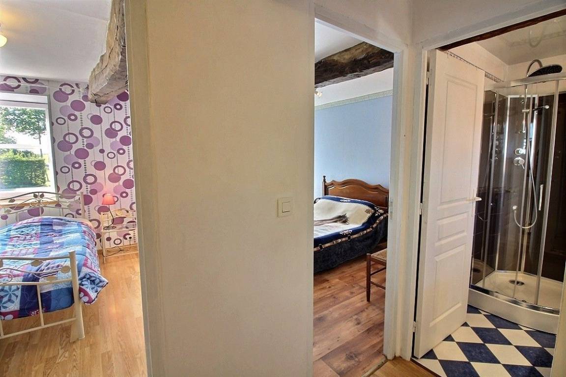 Obergeschoss: 2 Schlafzimmer (1 Doppelbett) (1 Einzelbett, 1 Babybett), Badezimmer mit Dusche und WC.
