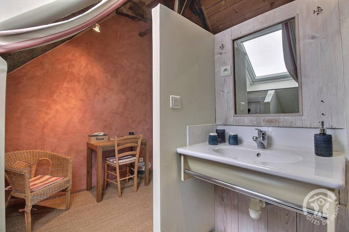 - das Kapitel. Argoat-Familien-Maisonette (1 Doppelbett 160 x 200 und 3 Einzelbetten 90 x 190), Badezimmer mit Toilette.