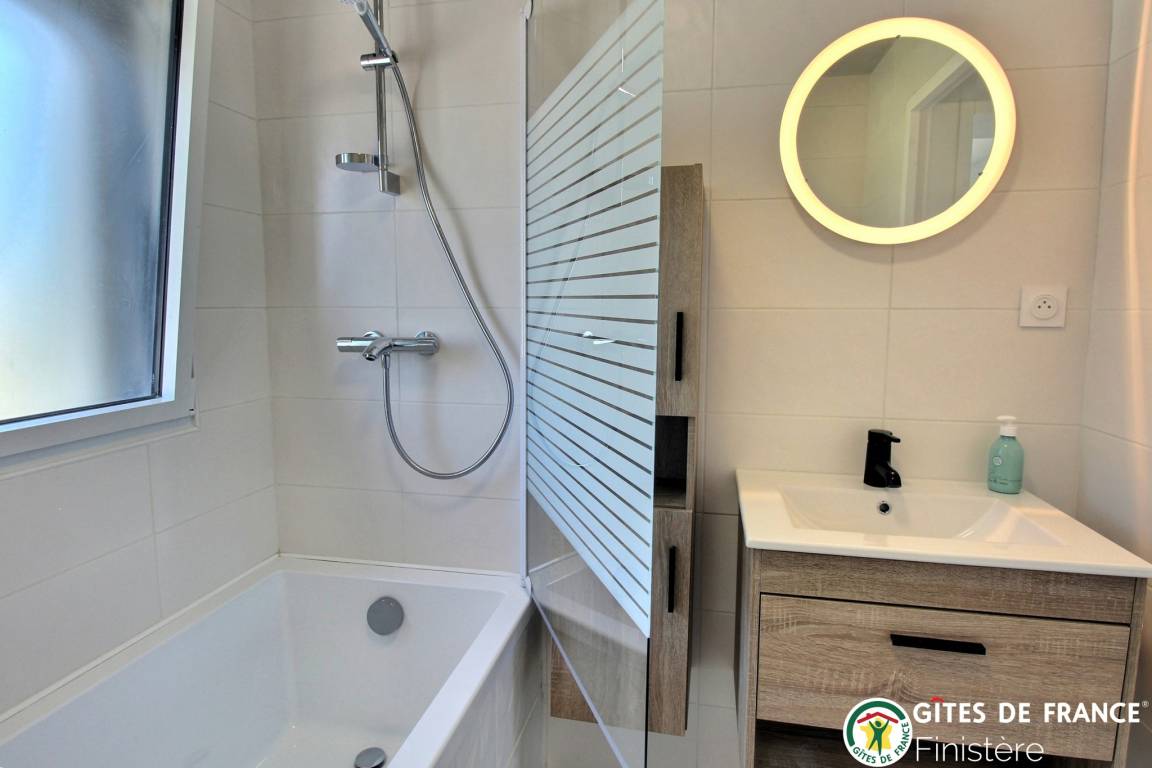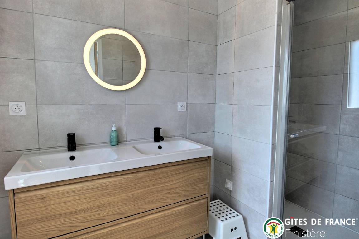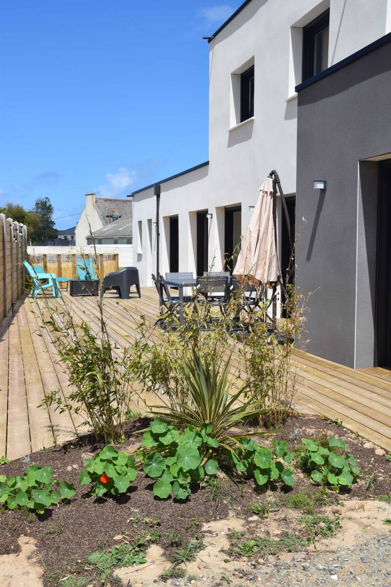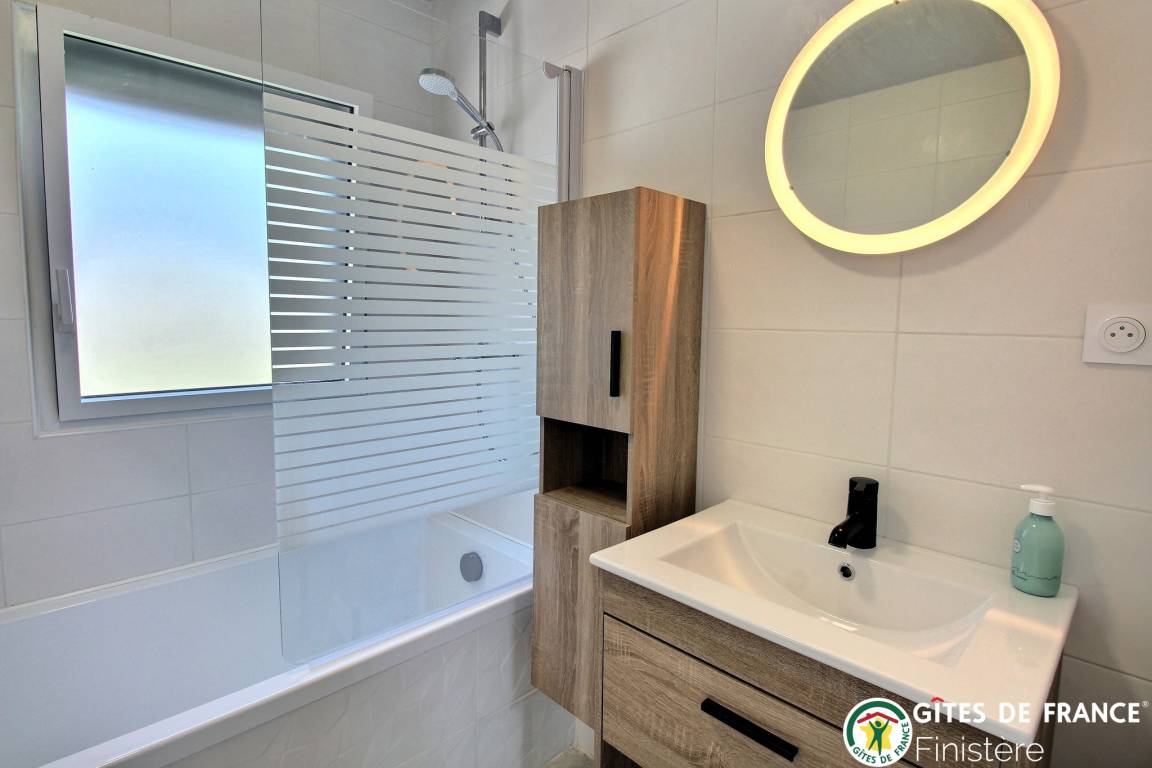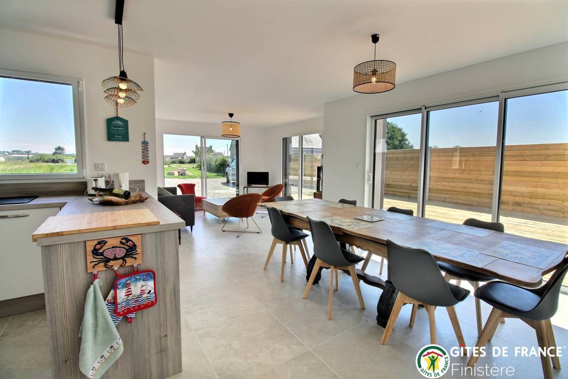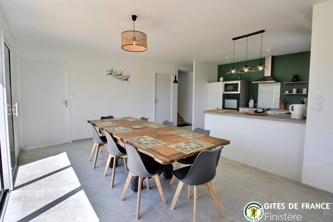„Un gîte neuf, lumineux, spacieux, très bien équipé. Très bien situé et dans un environnement calme. Un très bon séjour dans une région de Bretagne épargnée par le sur-tourisme même en plein mois d'août mais avec une contre-partie: L'offre de restauration est assez restreinte (il faut réserver assez longtemps à l'avance pour avoir une chance de trouver place). Côte et plages magnifiques.“