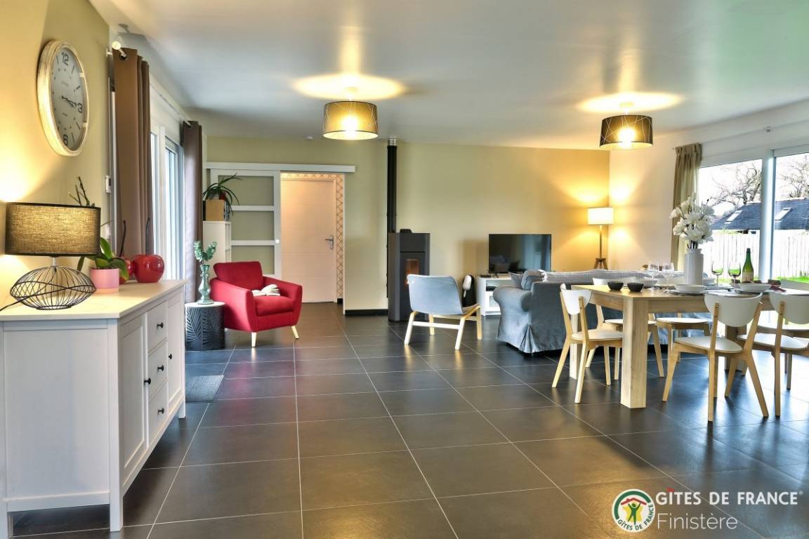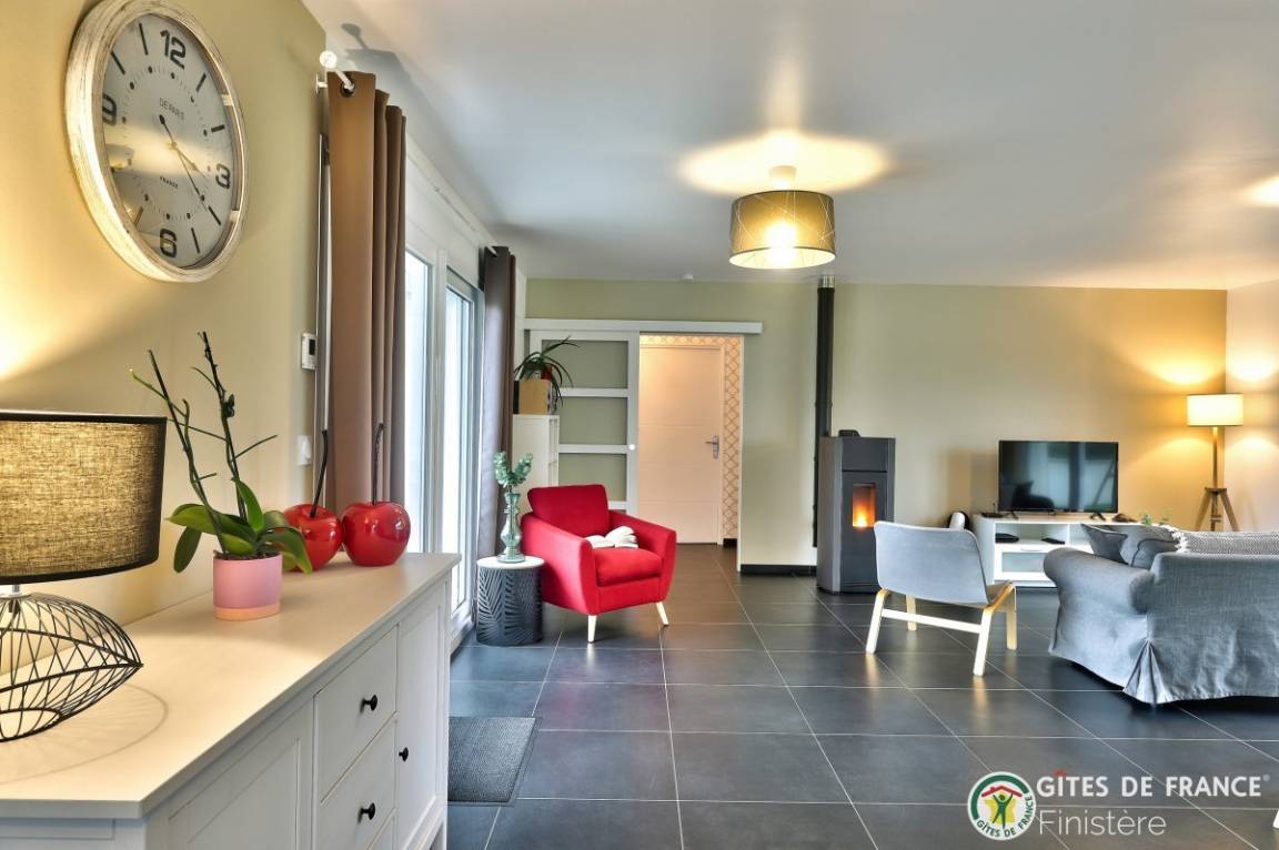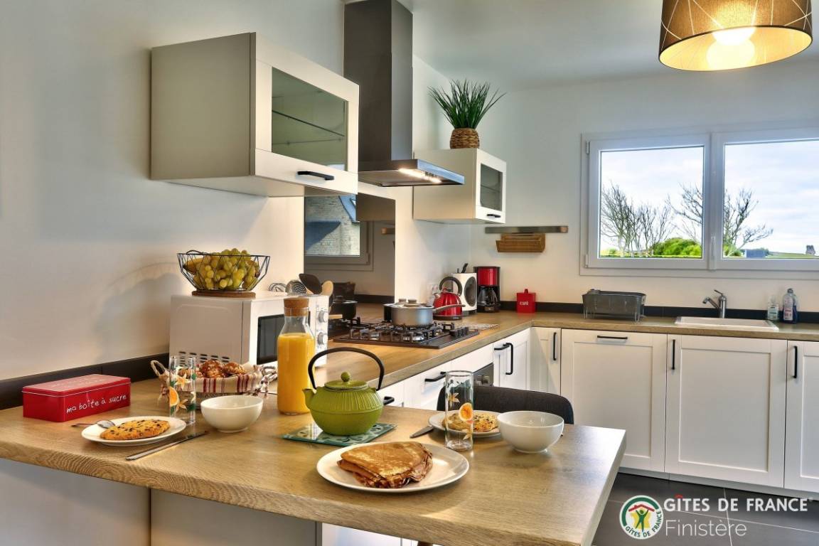 „Maison lumineuse très bien située, au calme avec une vue dégagée. Belle découverte du Finistère Nord avec une semaine ensoleillée qui a permis de mettre en valeur la beauté du paysage. Roscoff et son jardin botanique, une merveille; ile de batz; les dunes de keremma... Le Gr34 à côté de la maison est un vrai plus!“