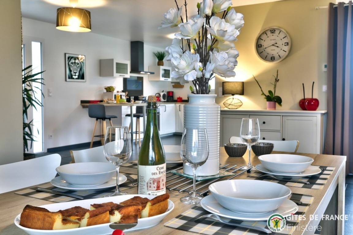 „Beau gîte, bien situé, proche de la mer...Belles prestations générales..Confort, propreté parfaite, bel agencement, cuisine bien équipée et spacieuse..Il ne manque rien à cette maison parfaitement entretenue et pensée pour le confort de ses locataires..Accueil chaleureux et aimable de Bernard, notre hôte...Nous recommandons cette maison confortable et très bien entretenue..Merci encore pour les petites attentions, qui signent toujours l'accueil bienveillant de nos amis bretons...Muriel et Dominique.“