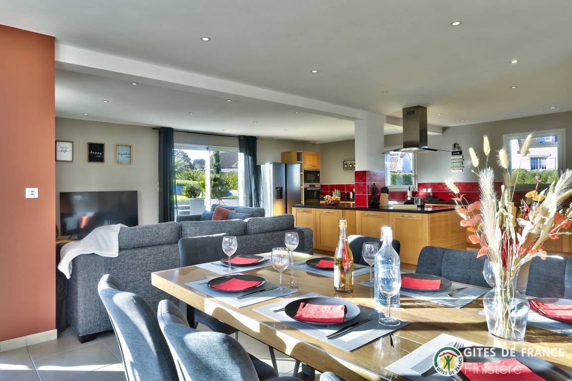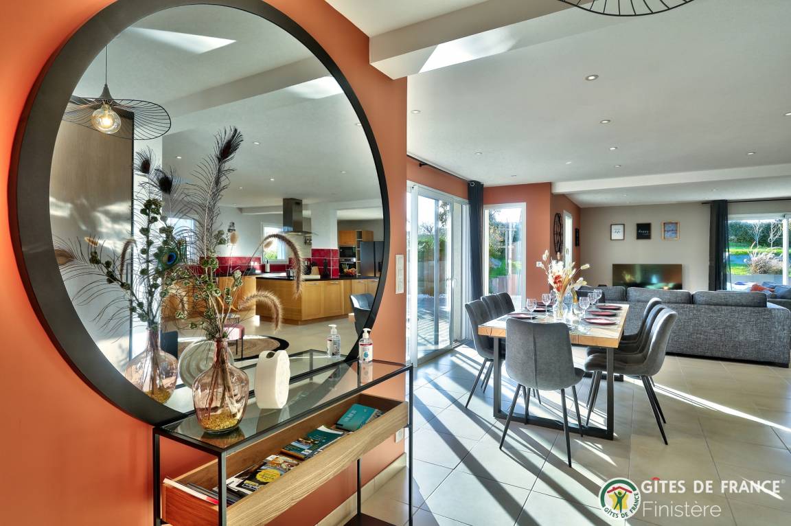 „Que dire si ce n'est que nous avons passé une excellente semaine dans la maison de Sophie. Tout est fait pour se sentir comme à la maison. L'équipement est parfait, la propreté impeccable et la pièce à vivre est juste incroyable car baignée de lumière. Le baby foot pour les petits et grands ainsi que le spa sont un vrai plus. Enfin la situation géographique permet de visiter cette si belle région sans problème. De Brest à Morlaix tout se fait en une heure max. Et vous n'êtes vraiment pas loin de la mer pour vous promener sur le sentier côtier et respirer les embruns. L'accueil et le départ se sont faits sans problème. Sophie et son mari sont très accueillants et réactifs à la moindre demande. Je conseille fortement de vous arrêter chez eux. C'était un plaisir“