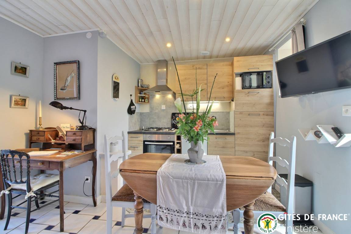 „Merveilleuses vacances à Kernéac'h. Tout est pensé pour que les vacanciers passent un excellent séjour. Le gîte est un véritable petit nid douillet, confortable, très calme, joliment décoré. Un Havre de paix pour le repos des corps et des âmes. Un très beau jardin fleuri avec soin, la mer au loin. Tout est harmonieux. Nous avons profité de ce magnifique coin de Bretagne, de la Côte des sables, des plages toutes proches, des petits ports charmants, des dunes.... La météo n'a pas été formidable, mais aucune importance, nous repartons avec le plein d'iode !Grâce à l'accueil chaleureux de Fabienne, la gentillesse et les partages de Jean-François pendant tout le séjour, le gourmand panier d'accueil, nous avons retrouvé ici le véritable esprit des Gîtes de France. Merci aussi d'accueillir les poilus à quatre pattes. Bravo à vous pour ce paradis breton, ne changez rien, tout est parfait et nous reviendrons à Kernéac'h, c'est une certitude !“