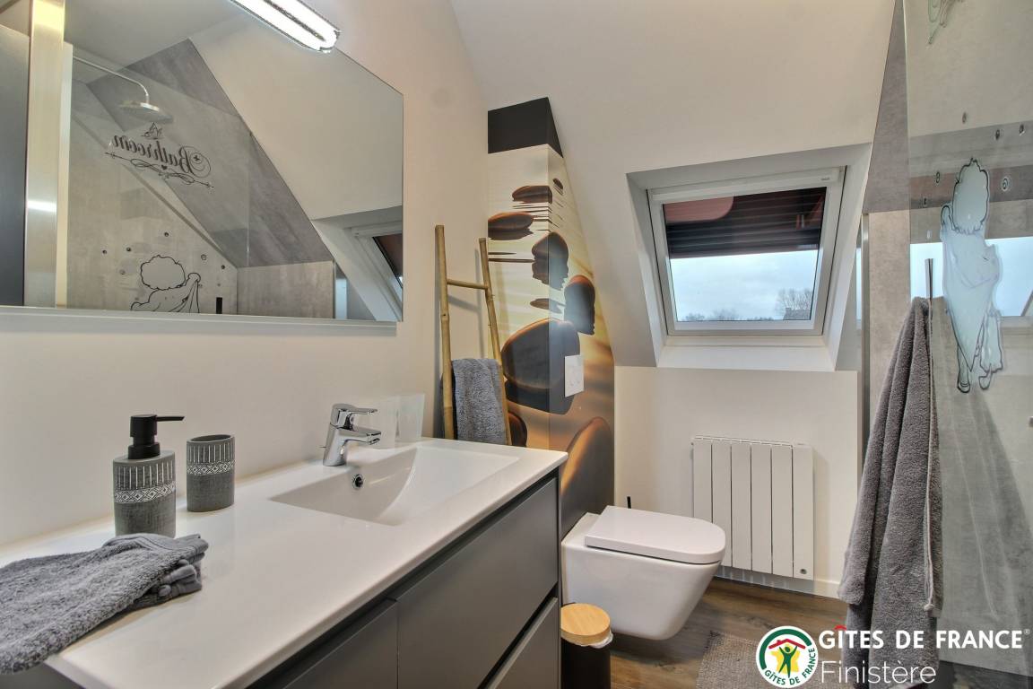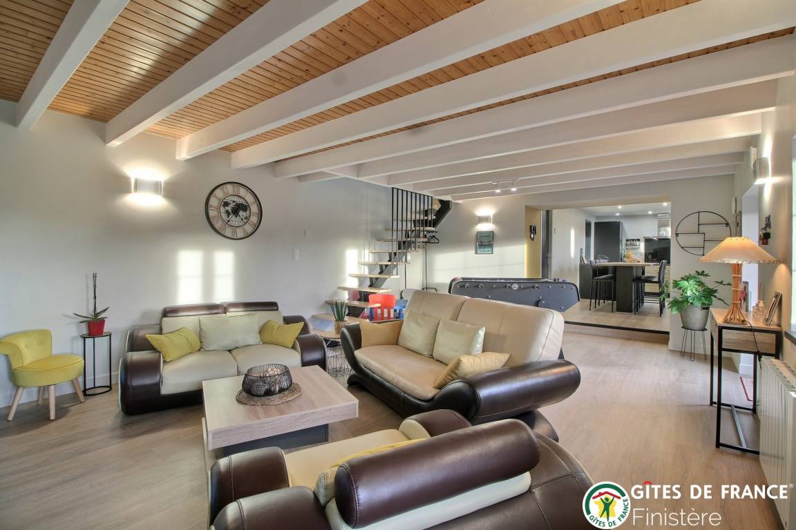 „Un séjour parfait pour nous deux. L’accueil est chaleureux, cidre et galettes nous attendaient. La maison récemment rénovée est vaste et remarquablement équipée, il ne manque vraiment rien. Le jardin est très grand, bien fleuri et très calme. Le gite est très bien placé pour rayonner dans le nord du Finistère et, autre avantage, à quelques minutes à pied de la merLes magnifiques paysages alentour et la gentillesse de Carole et Guy qui font le maximum pour satisfaire leurs locataires nous ont permis de passer un super séjour.“