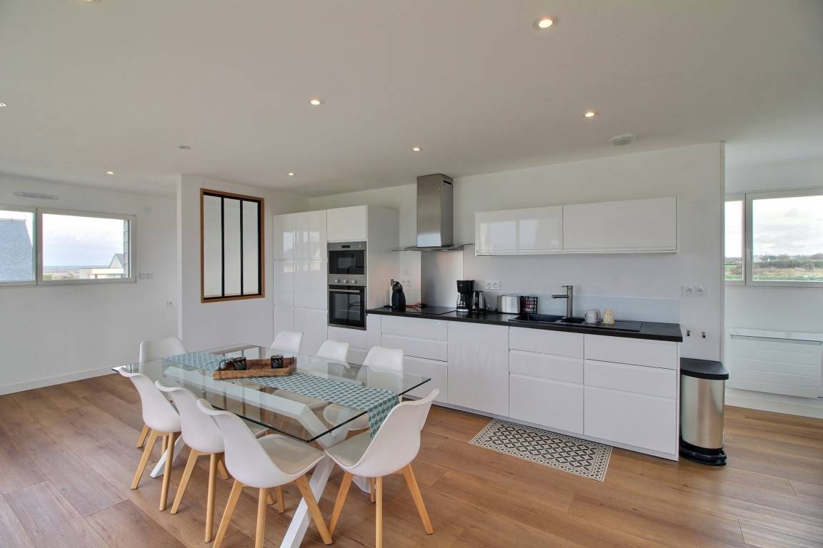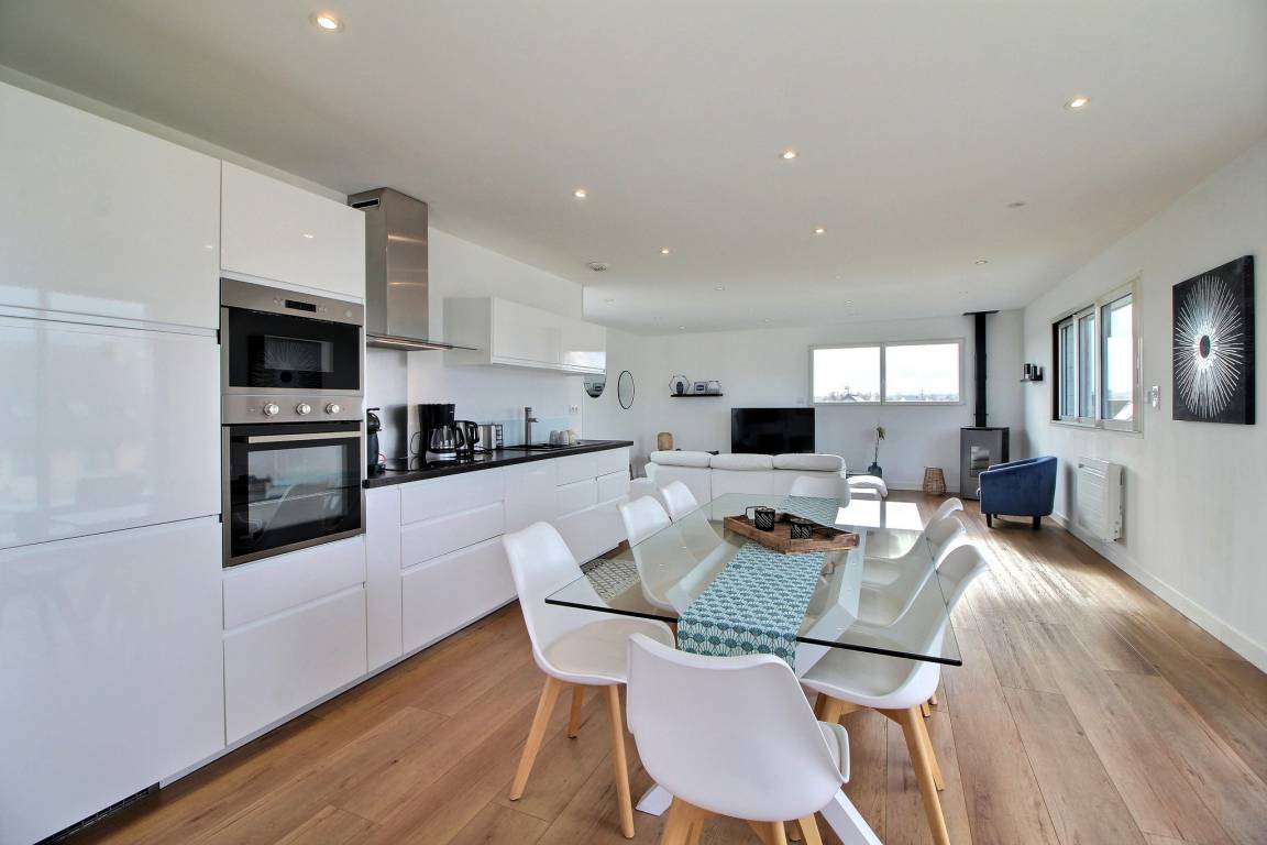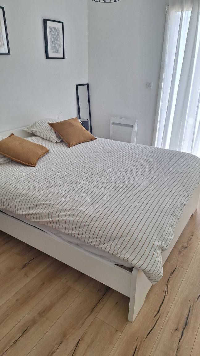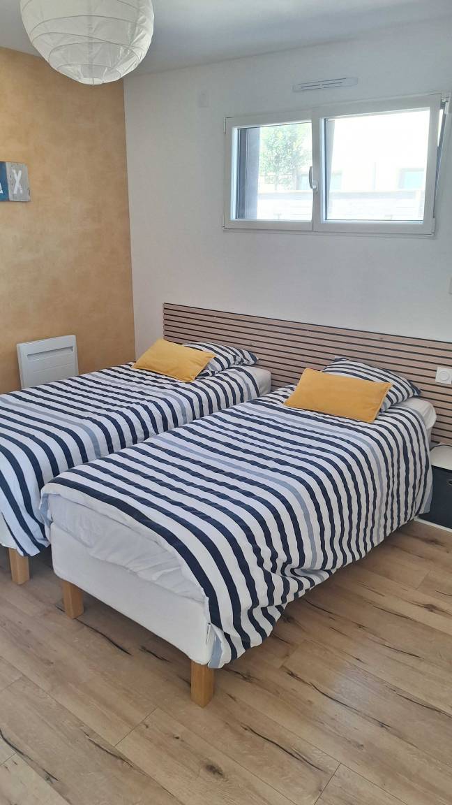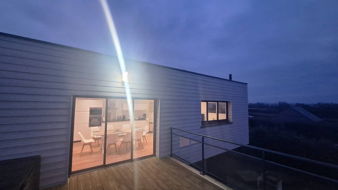 „La maison est en 2ème ligne mais très belle vue depuis la terrasse sur la mer et les couchers de soleil, équipements modernes, lits très confortables, maison très lumineuse, quartier très calme, le leiux de vie au 1er étage est bien agencé, très bon séjour avec une météo favorable ! pas de canicule !“