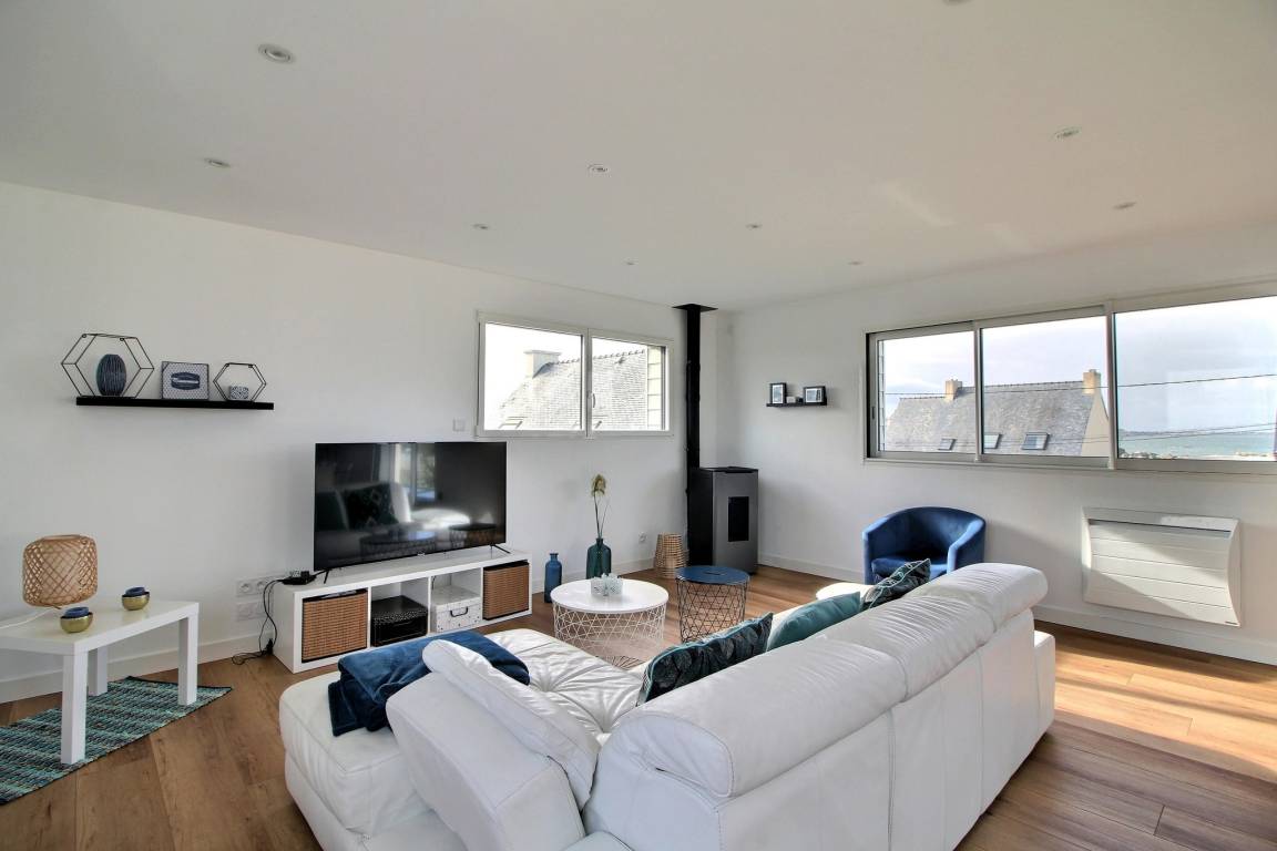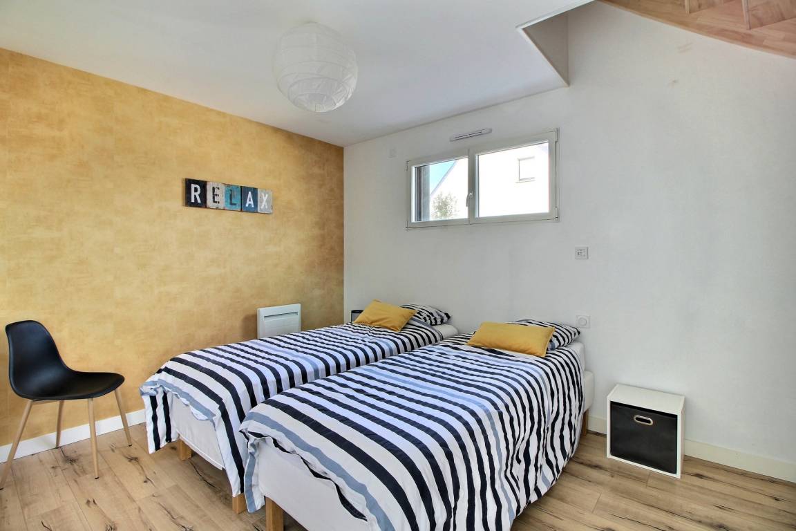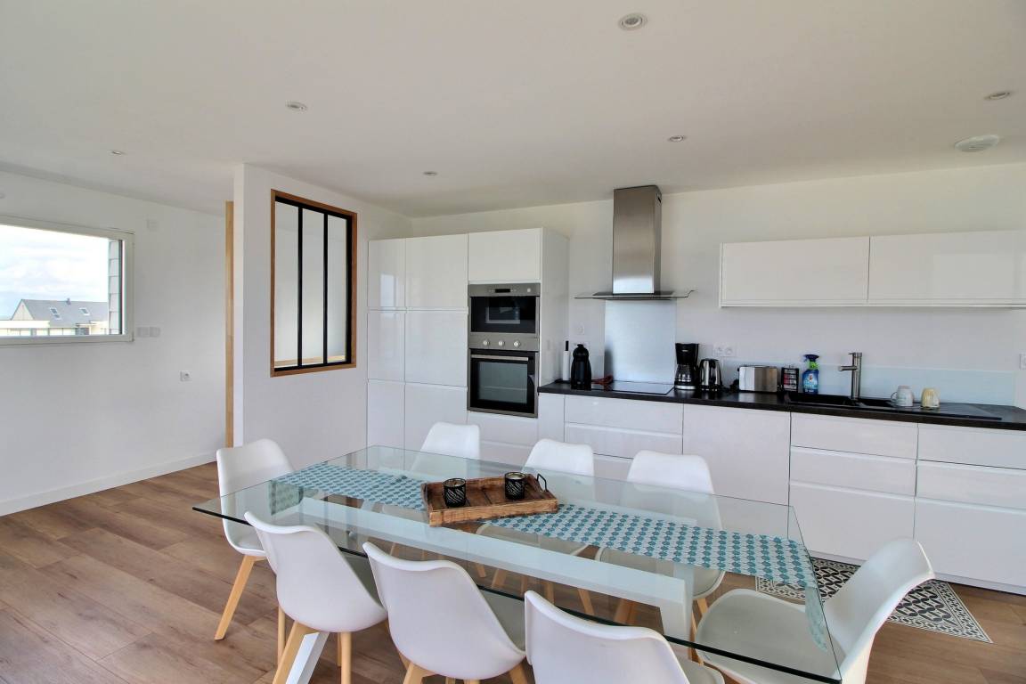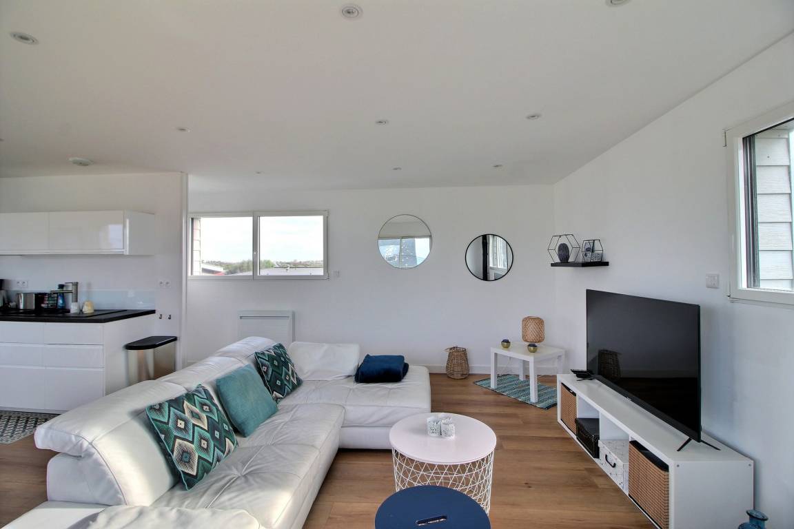 „La maison est en 2ème ligne mais très belle vue depuis la terrasse sur la mer et les couchers de soleil, équipements modernes, lits très confortables, maison très lumineuse, quartier très calme, le leiux de vie au 1er étage est bien agencé, très bon séjour avec une météo favorable ! pas de canicule !“