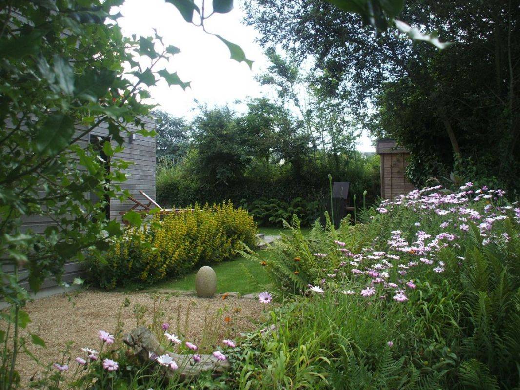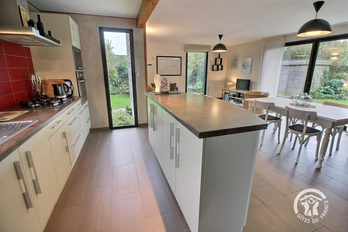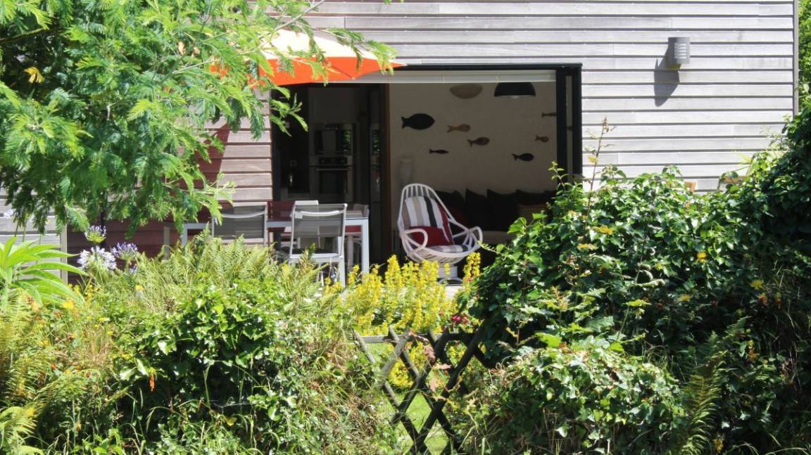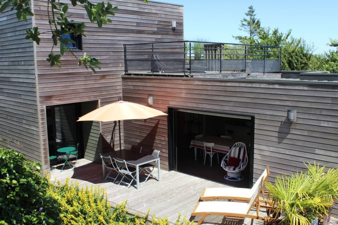 „Maison contemporaine, bien équipée, lumineuse et spacieuse pour 4. On ne se marche pas dessus. Environnement privilégié quand on aime le calme et la verdoyance. GR 34 à 3 mn. Cerise sur le gâteau: Prise pour recharger la voiture. Nous étions déjà venus en hiver, et cette fois nous avons pleinement pu profiter du jardin très intelligemment agencé, à la fois verdoyant et fleuri. Nous avons aussi profité des terrasses, pour manger et prendre le soleil. Merci aux propriétaires pour leur accueil et leur confiance. Et un grand merci d'Ourrah, pour la mise à disposition d'une gamelle d'eau toute neuve et toujours bienvenue au retour des balades“