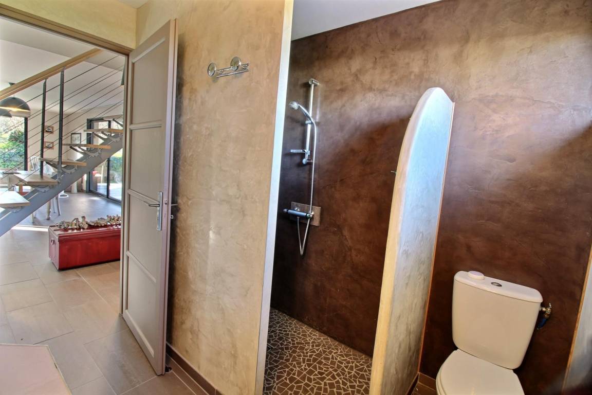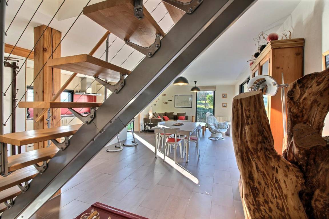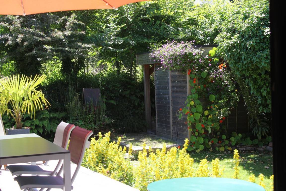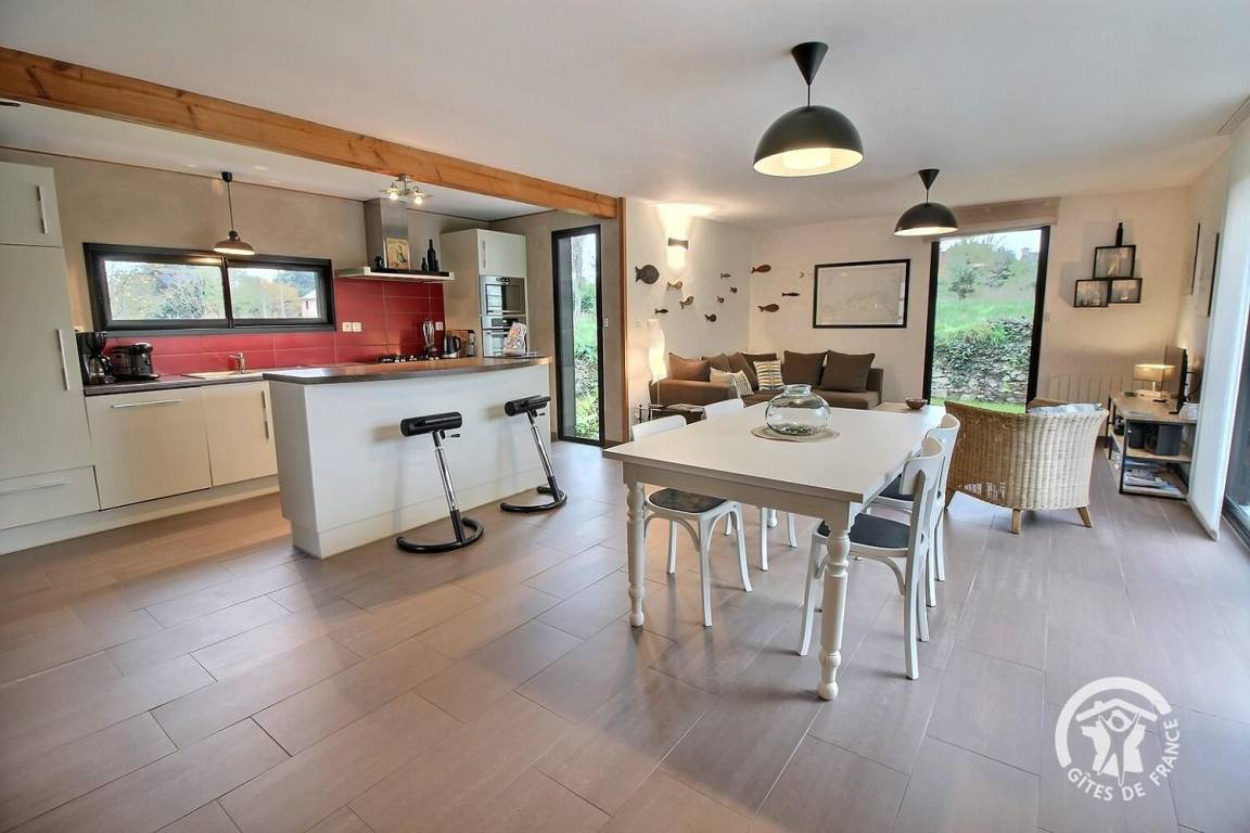 „Maison contemporaine, bien équipée, lumineuse et spacieuse pour 4. On ne se marche pas dessus. Environnement privilégié quand on aime le calme et la verdoyance. GR 34 à 3 mn. Cerise sur le gâteau: Prise pour recharger la voiture. Nous étions déjà venus en hiver, et cette fois nous avons pleinement pu profiter du jardin très intelligemment agencé, à la fois verdoyant et fleuri. Nous avons aussi profité des terrasses, pour manger et prendre le soleil. Merci aux propriétaires pour leur accueil et leur confiance. Et un grand merci d'Ourrah, pour la mise à disposition d'une gamelle d'eau toute neuve et toujours bienvenue au retour des balades“