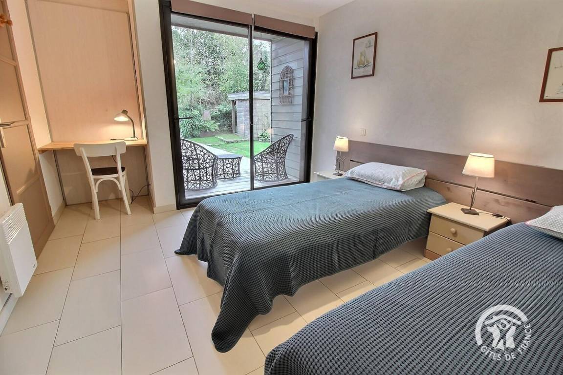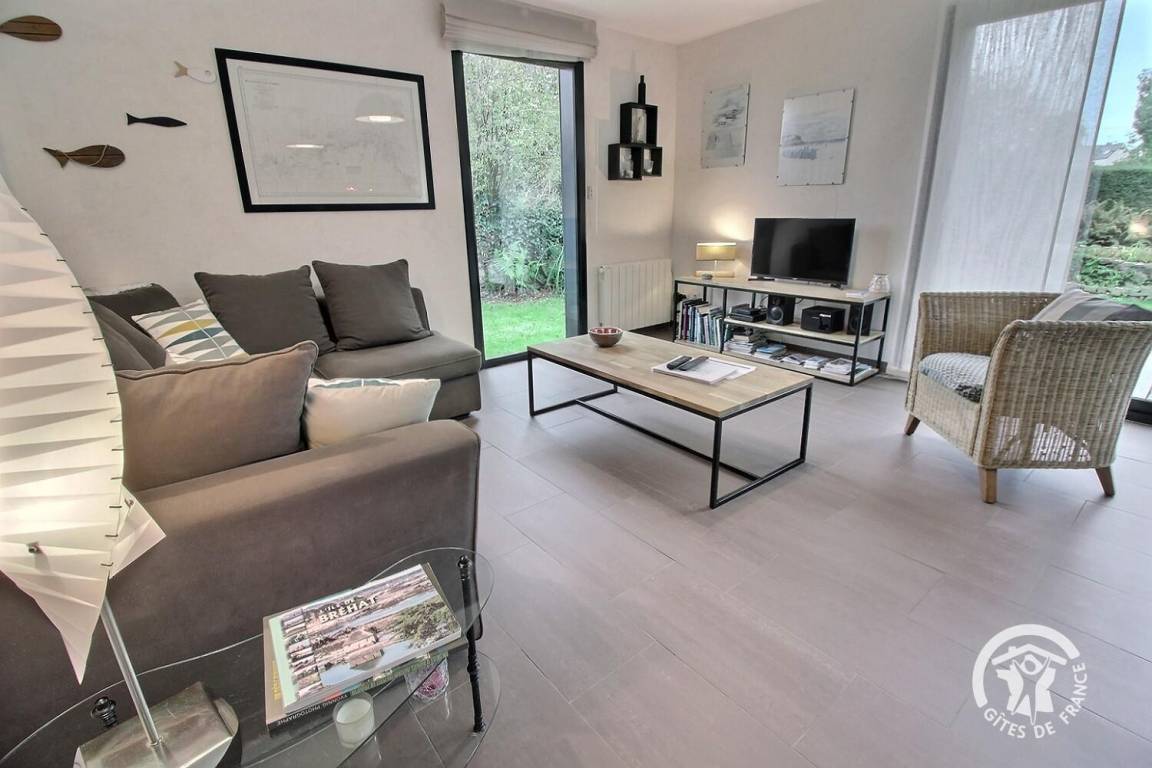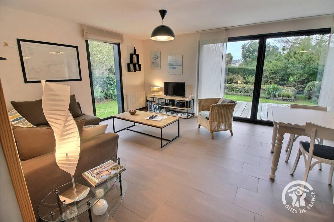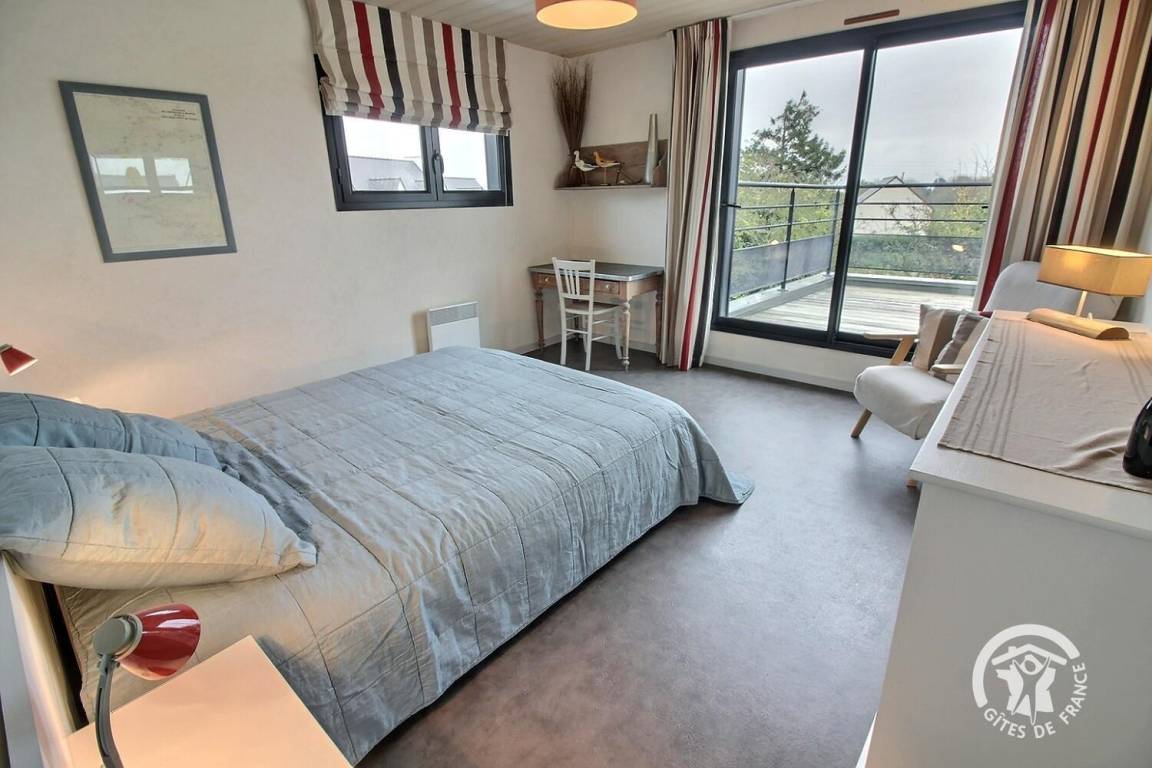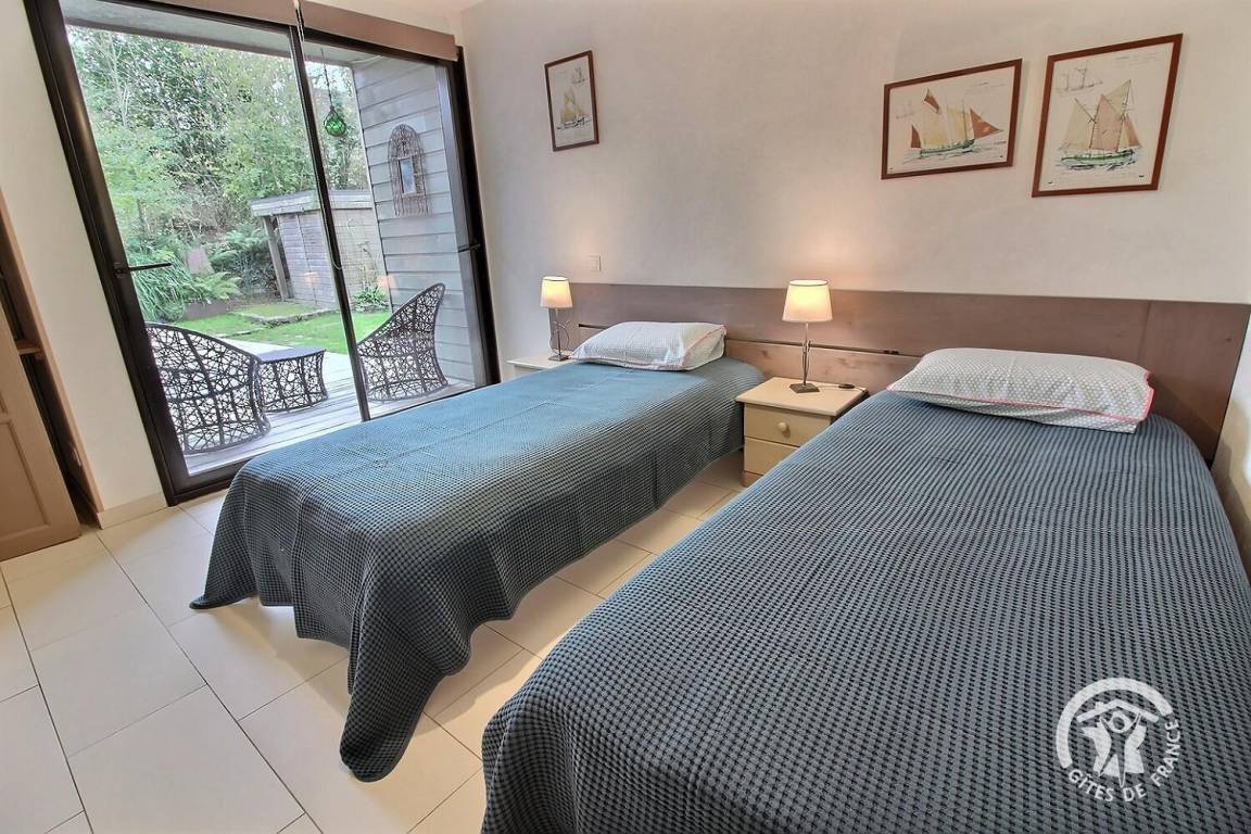 Ihre Ferienwohnung umfasst im Erdgeschoss: großes helles Zimmer von 46 m², inklusive voll ausgestatteter Küchenecke, angenehmes Wohnzimmer (TV und DVD) mit Zugang zur Terrasse (Südlage) und 300 m² Garten. 1 Schlafzimmer (2 Einzelbetten 90x190), mit Zugang zur Terrasse, Bad mit ebenerdiger Dusche und WC Etage: 1 Schlafzimmer (1 Doppelbett 160x200) mit Zugang zur Terrasse (Meerblick auf der Ile de Bréhat und der Spitze des Bilfot), Badezimmer mit ebenerdiger Dusche und WC. Babyausstattung: Leinenbett, Badewanne und Hochstuhl. Grillplatz und Fahrradgarage. -10% auf die 2. Woche, das ganze Jahr über.
