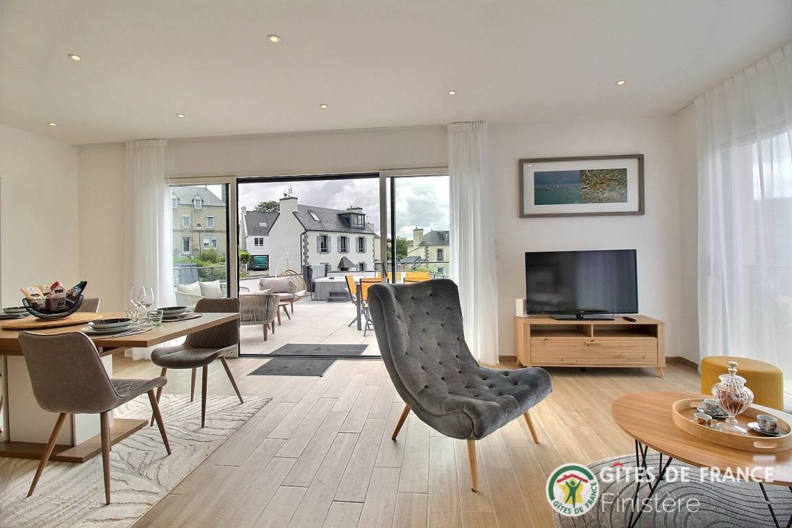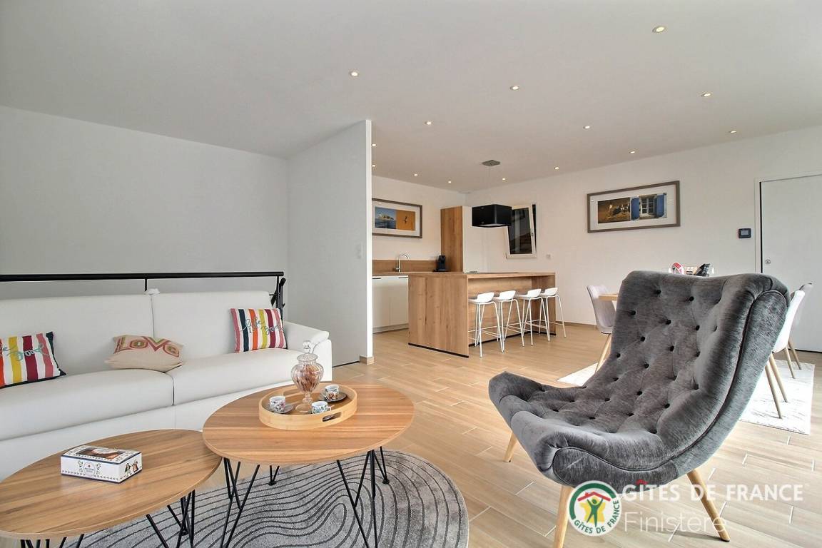 „Tres bonne localisation pour cette très belle maison contemporaine. Ideal pour découvrir à la fois le Finistère mais aussi les côtes d'Armor. Une magnifique vue que ce soit de la pièce à vivre ou de la terasse, un paysage de carte postale changeant au grès des marées... Logement tres bien équipé. Literie confortable. Propriétaire disponible au besoin, et sympathique. Nous sommes assez exigeant en général mais là tout y est pour passer un agréable séjour...Rien a redire“