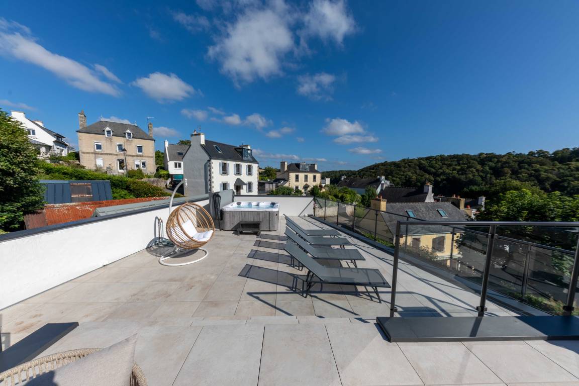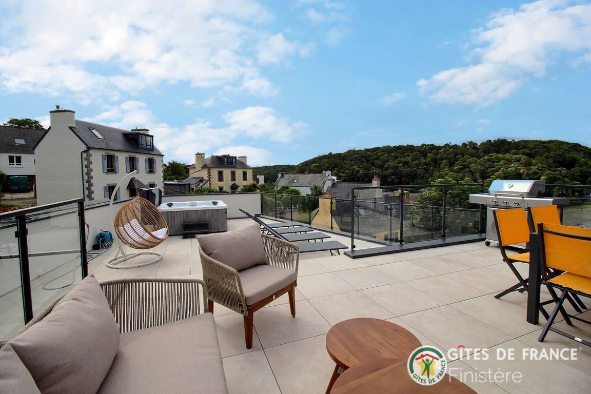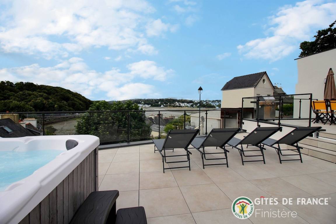 „Une vraie maison de vacances au pied du port Dourduff.La maison est neuve avec une grande terrasse, un jacuzzi, un barbecue au gaz, la vue est magnifique. Elle est lumineuse, parfaitement équipée et la literie est très confortable. Les propriétaires sont charmants, prévenants et très accueillants. Nous avons été accueillis un panier gourmand de spécialités régionales et un excellent far Breton.1000 mercis pour cet excellent séjour dans le Finistère !“