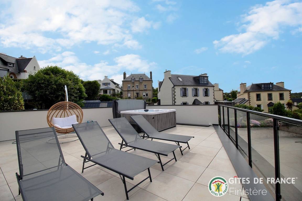 „Gîte absolument magnifique, presque neuf, à la fois cossu et fonctionnel. Très lumineux, une magnifique terrasse avec une vue imprenable qu’on savoure à chaque instant, au gré des marées. Un jacuzzi pour profiter de la vue en se délassant après une randonnée sur le GR34, quelle chance ! Un accueil très attentionné du propriétaire avec de nombreuses surprises très agréables à l’arrivée, dont certaines se mangent ou se boivent, et qui permettent de s’immiscer d’emblée dans la dégustation de spécialités locales. En résumé, une prestation quasi hôtelière haut de gamme.“