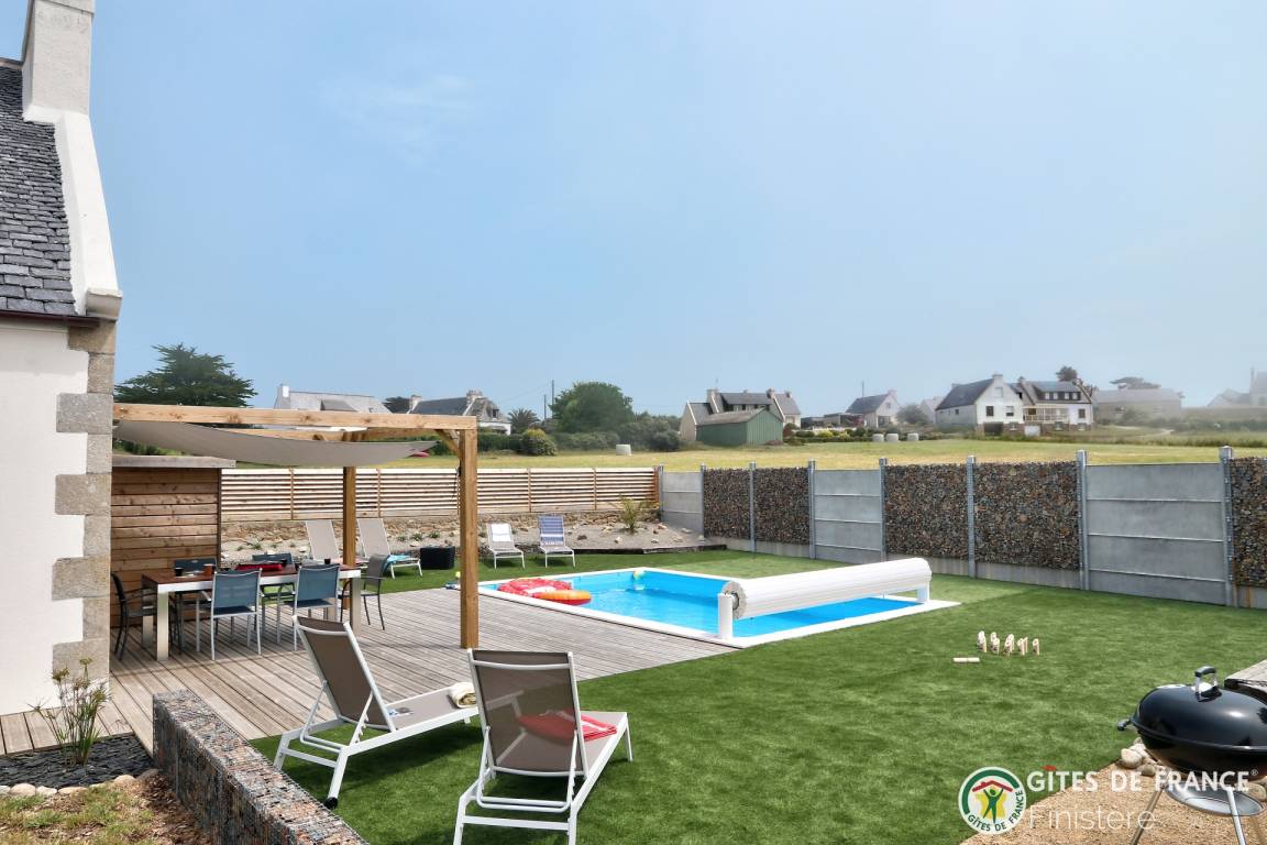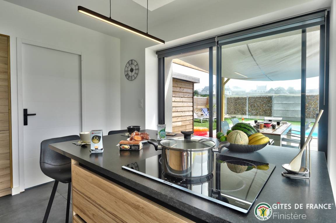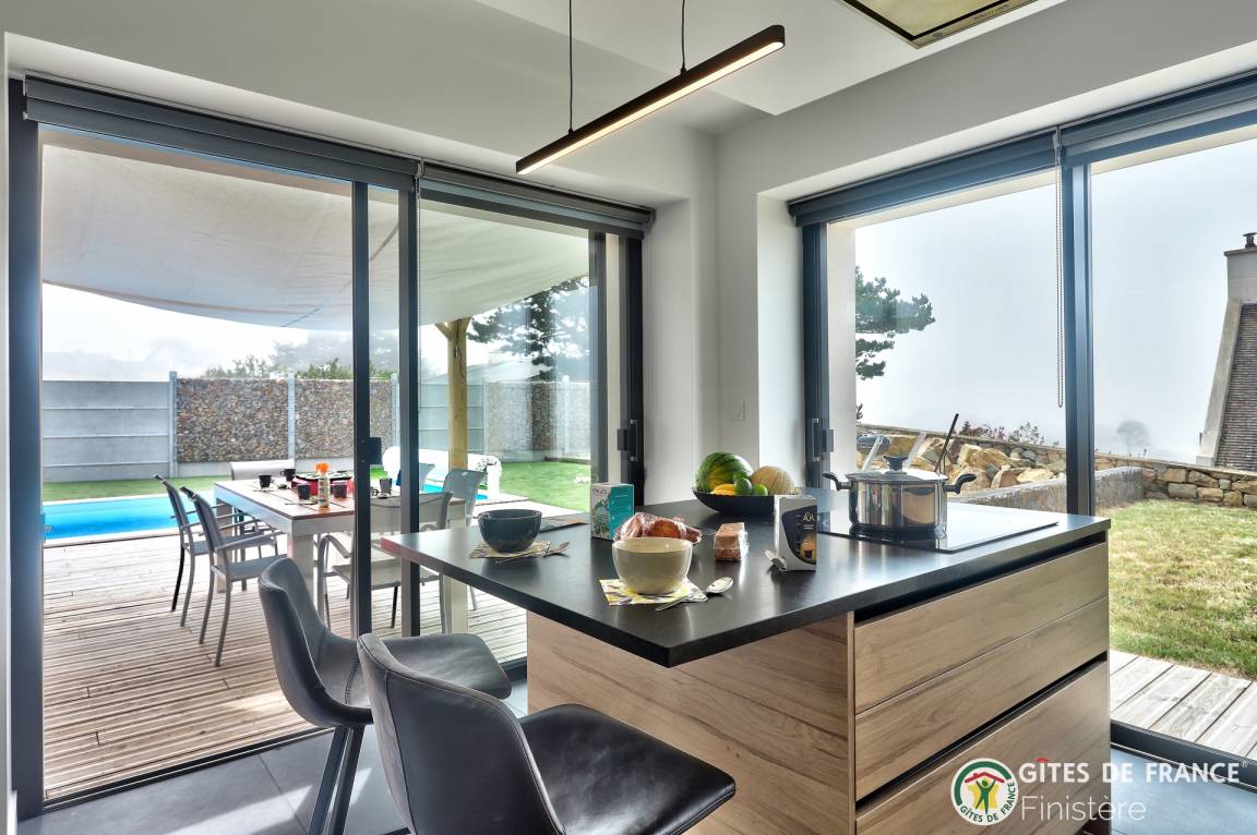 „Séjour en famille en mai 24. Maison moderne, très très bien équipée, très propre. Les propriétaires sont très accueillants. La vue est magnifique avec de superbes couchers de soleil. La piscine chauffée est un vrai plus, nous avons pu en profiter tous les jours pendant cette semaine où le soleil était au rendez vous. Nous avons séjourné en famille mais il est tout à fait envisageable de séjourner entre amis (trois couples par exemple) compte tenu du confort de toutes les chambres. La région est magnifique, l'accès au GR est immédiat. Plougasnou est à endroit à visiter sans hésiter.“