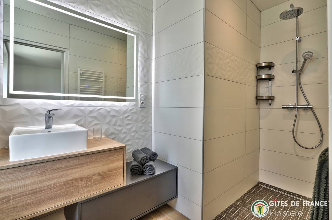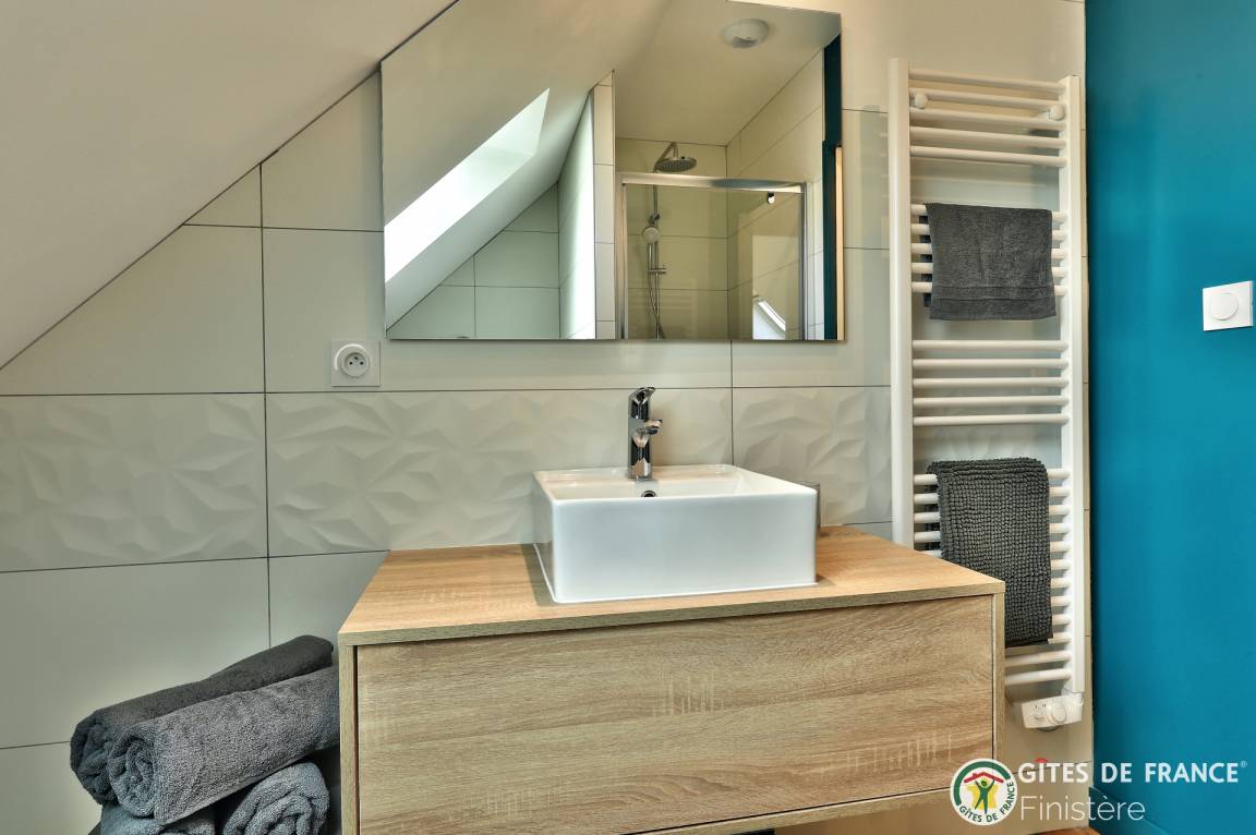 „Nous avons passé un très bon séjour dans cette location de vacances. Le logement est parfaitement conforme à la description, très propre, très bien équipé, rien ne manque et décoré avec goût. L’emplacement est idéal pour découvrir la région. Nous avons particulièrement apprécié la vue imprenable sur la mer, un vrai bonheur au quotidien. Les hôtes sont accueillants et attentionnés. Une belle parenthèse bretonne que nous recommandons sans hésiter !“
