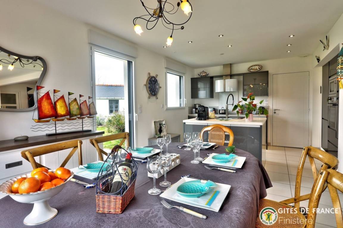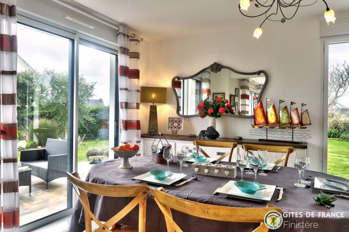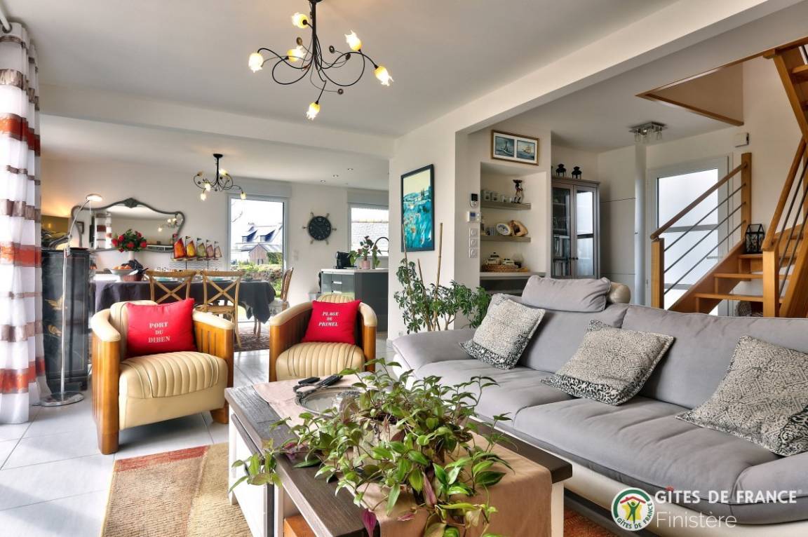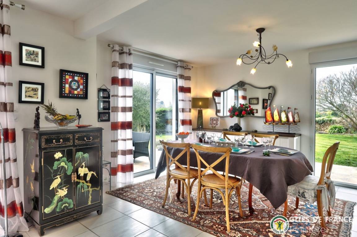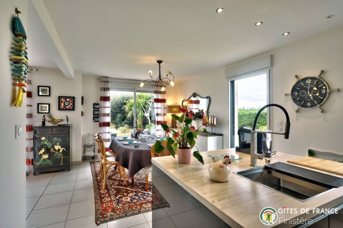 „Maison spacieuse et lumineuse au calme et bien située: Proche du centre ville et de la mer. Merci aux propriétaires pour leur accueil. Je reviendrai.. Très joli coin de Bretagne.“