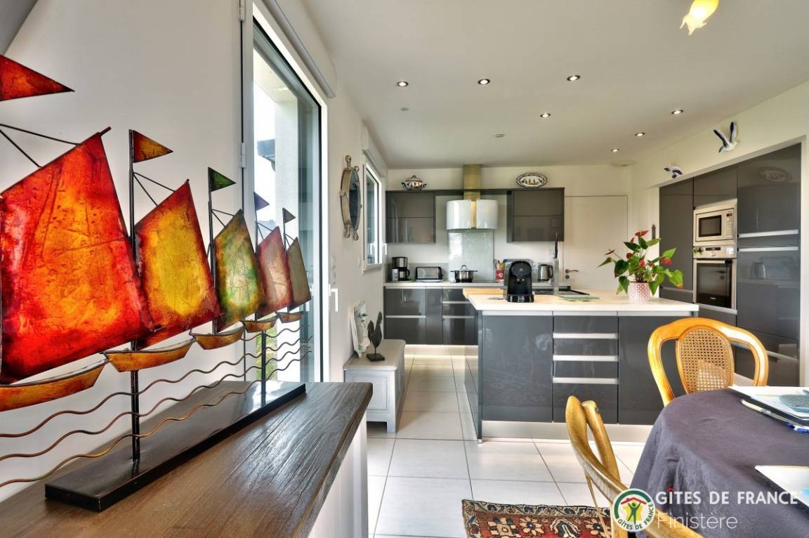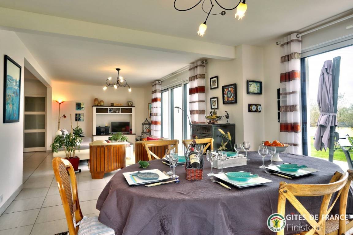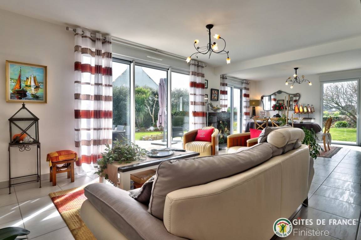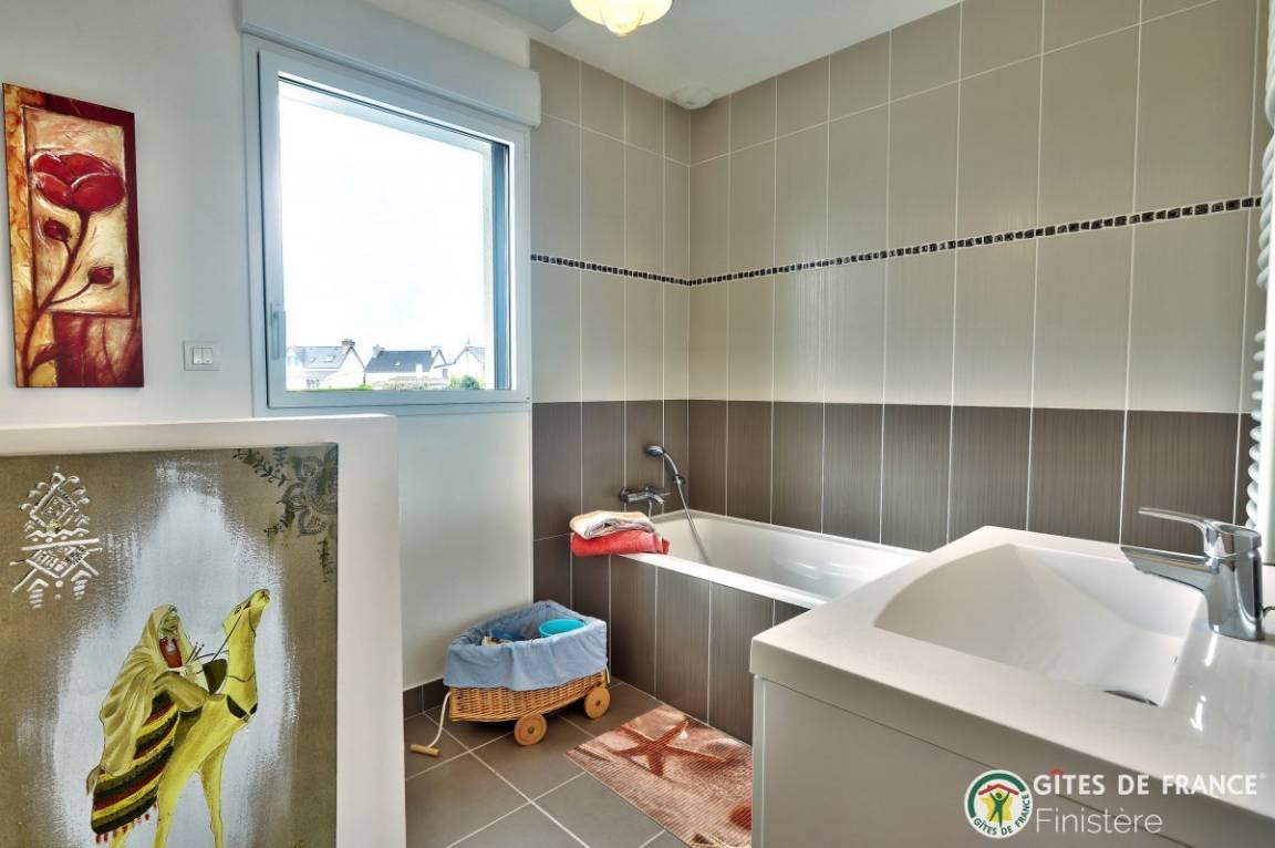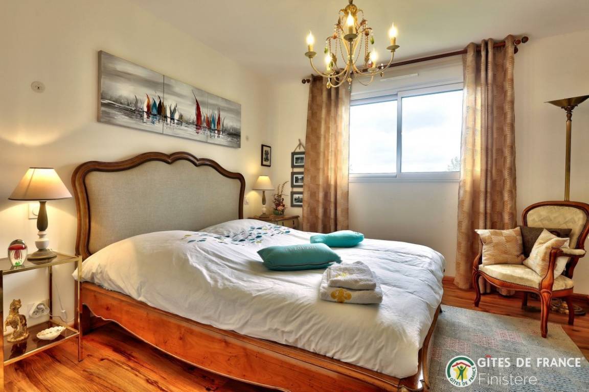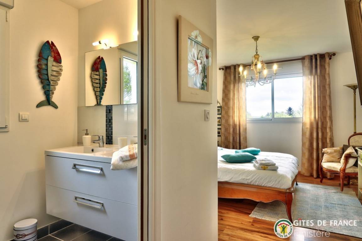 „Maison spacieuse et lumineuse au calme et bien située: Proche du centre ville et de la mer. Merci aux propriétaires pour leur accueil. Je reviendrai.. Très joli coin de Bretagne.“
