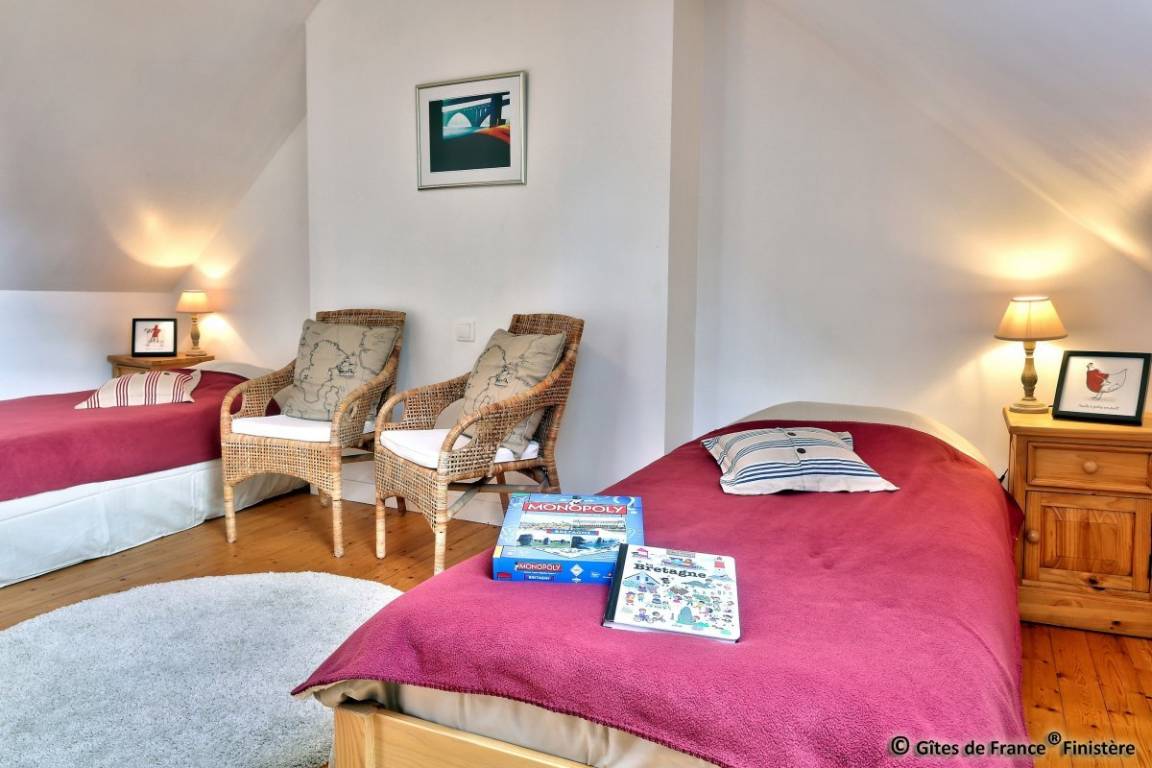 „Gîte idéalement situé pour découvrir la Bretagne. Très bon accueil des propriétaires. Leur gîte se trouve juste à côté, ce qui leur permet d'être disponibles pour nous proposer des idées de sorties tout en restant très discrets. A recommander.“
