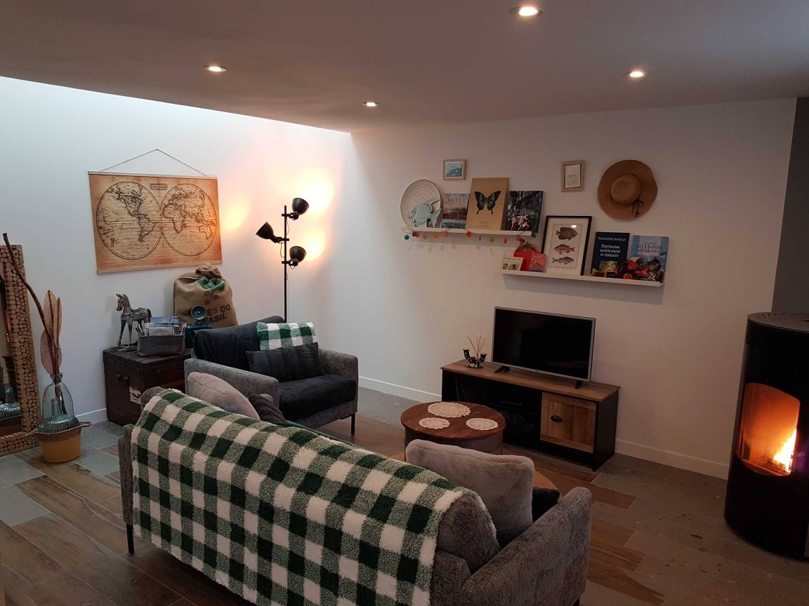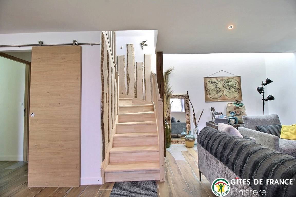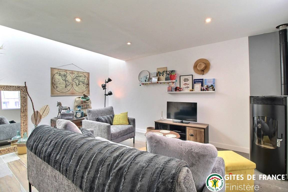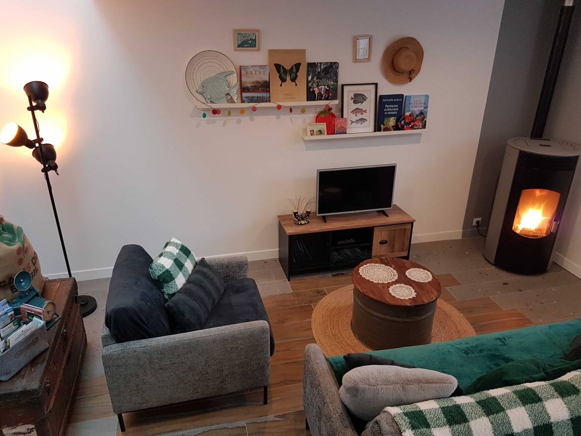 „Nous sommes restés quelques nuits avec nos 2 petits enfants durant la période de Noël. Sophie etait là pour nous accueillir. Le salon salle de séjour était entièrement aux couleurs de Noël, il y avait même un sapin entièrement décoré. Le poêle etait allumé et dispensait une chaleur bienvenue. Un sachet en papier nous attendait contenant une boîte de caramels au beurre salé et à la fraise de Plougastel ainsi qu'un sachet de gâteaux bretons. Trop bons ! Très agréable et délicate attention. Le logement est plus que propre, très bien décoré, tout sent le neuf. Les lits sont très confortables et l'environnement est très calme. La propriétaire est facilement joignable et à l'écoute. Située dans un hameau typique à quelques minutes de la mer. De belles valades à faire à la découverte des hameaux de Plougastel.“