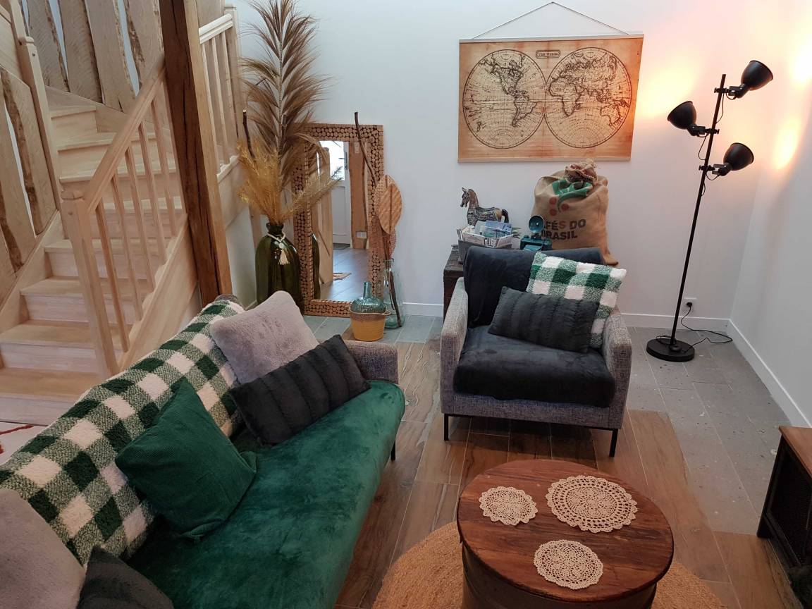„Séjour très agréable. Sophie et Sébastien sont à l’écoute. Nous avons apprécié de ne pas être trop loin du bourg tout en étant dans un environnement champêtre. Le hameau est plein de charme. Le gîte est très lumineux et décoré avec goût.“
