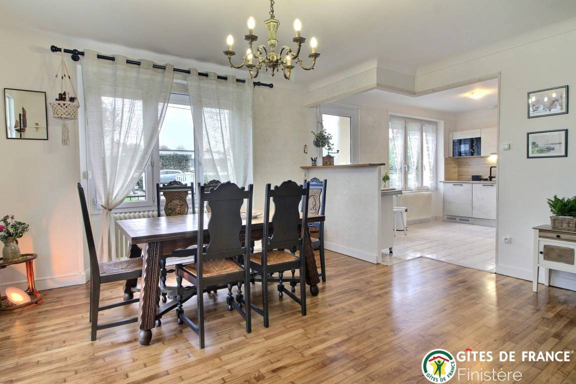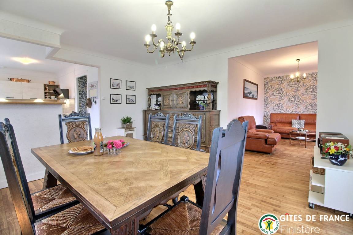 „Cette maison a été une base très agréable pour notre séjour dans le Finistère. Elle est entretenue avec soin et bien équipée. Nous avons particulièrement apprécié:- l'accueil de Renée (les crêpes qu'elles nous a offertes à notre arrivée étaient vraiment excellentes!) - le grand jardin et l'ombre de ses deux pommiers- le calme- la proximité de chemins de randonnée- la proximité des commerces (supermarché et boulangerie à 300m) Une location à conseiller sans réserve!“