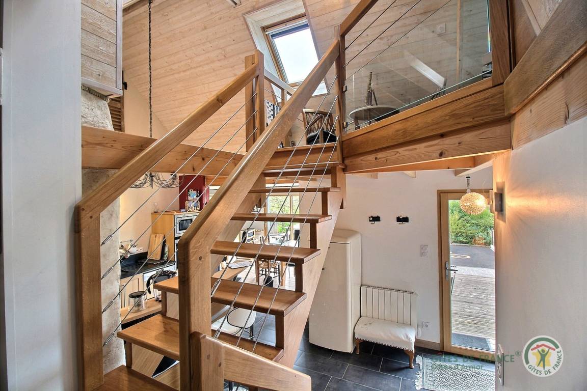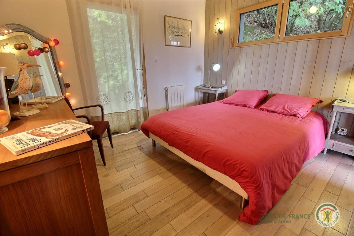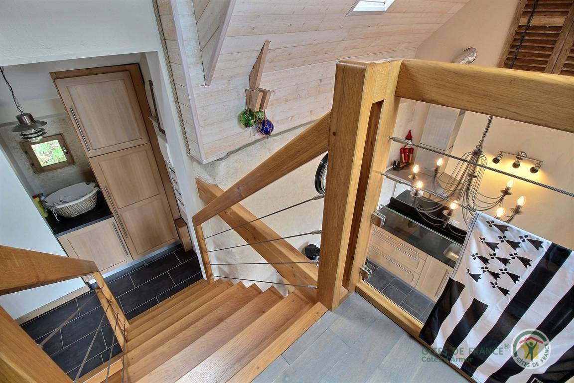 Ihre Ferienwohnung beinhaltet im Erdgeschoss: Einbauküche, Wohnzimmer und Aufenthaltsraum, 1 Schlafzimmer mit 1 Bett 160X200, 1 Schlafzimmer mit 2 Betten 90X200, Badezimmer mit Dusche, separates WC. Etage: im Zwischengeschoss 1 Schlafzimmer mit 1 Bett von 90X200. Holzterrasse von 51 m² mit Meerblick, Pelletofen, 5 € pro Beutel.