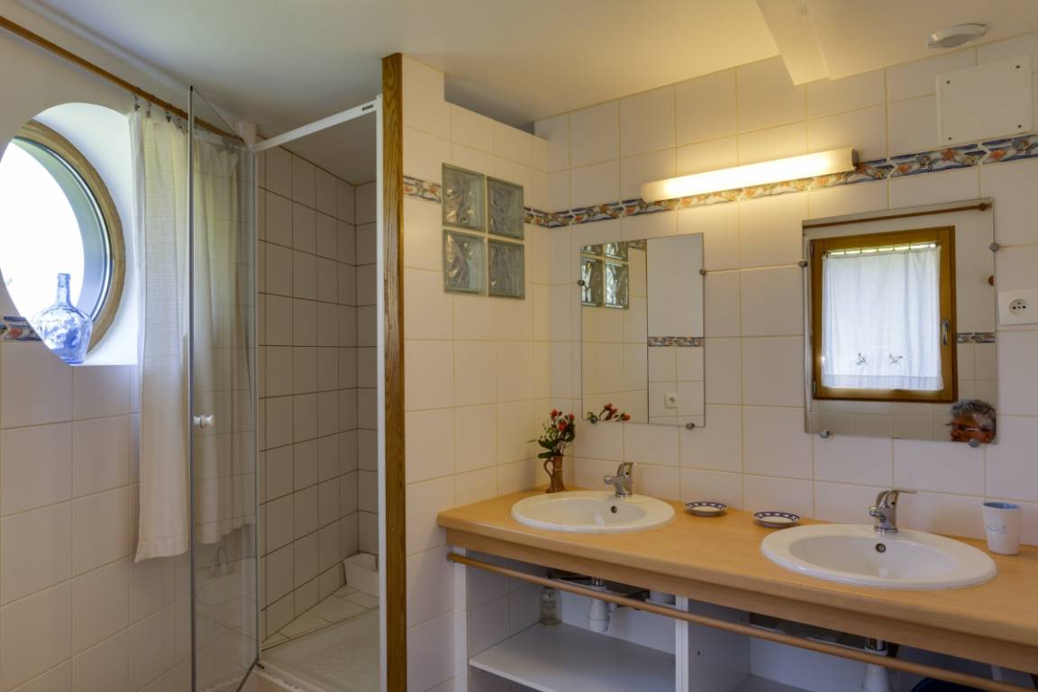 Ihre Ferienwohnung umfasst im Erdgeschoss: Küchenbereich, Wohnzimmer, Wohnzimmer. Ein Schlafzimmer (1 Doppelbett 140 cm), Badezimmer mit Dusche, WC, das über kleine Treppenabsätze (2 Stufen) erreichbar ist. Oben: ein Zwischengeschoss mit einem Wohnbereich mit Meerblick und Zugang zur Terrasse, ein Schlafbereich (1 Einzelbett 90x190), gut isoliert durch einen blickdichten Vorhang und Toiletten. 1 großes Schlafzimmer (2 Einzelbetten 0,90x2m) auf Wunsch modulierbar in einem Bett von 1,80m x 2m. Privates Grundstück von 270 m². Gefrierschrank, Waschmaschine, Trockner im kleinen geschlossenen Nebengebäude.
