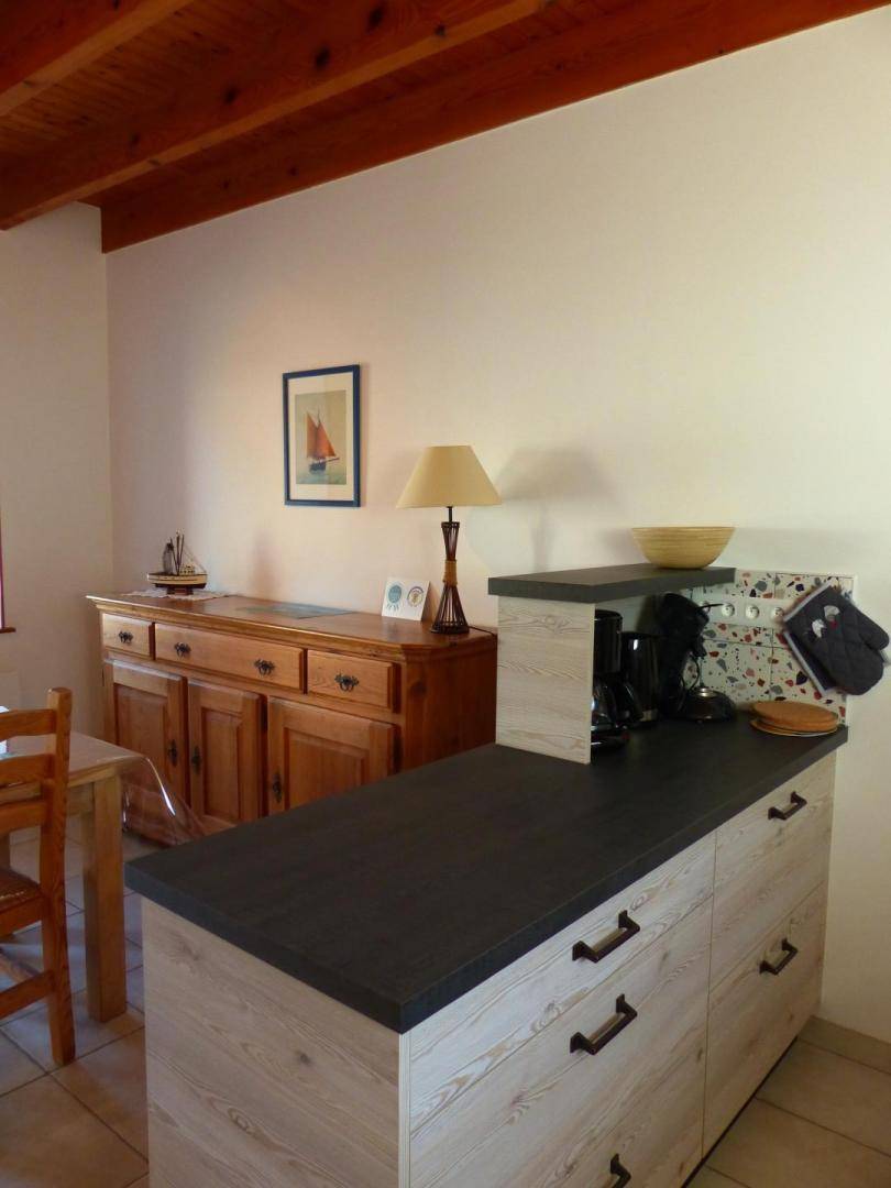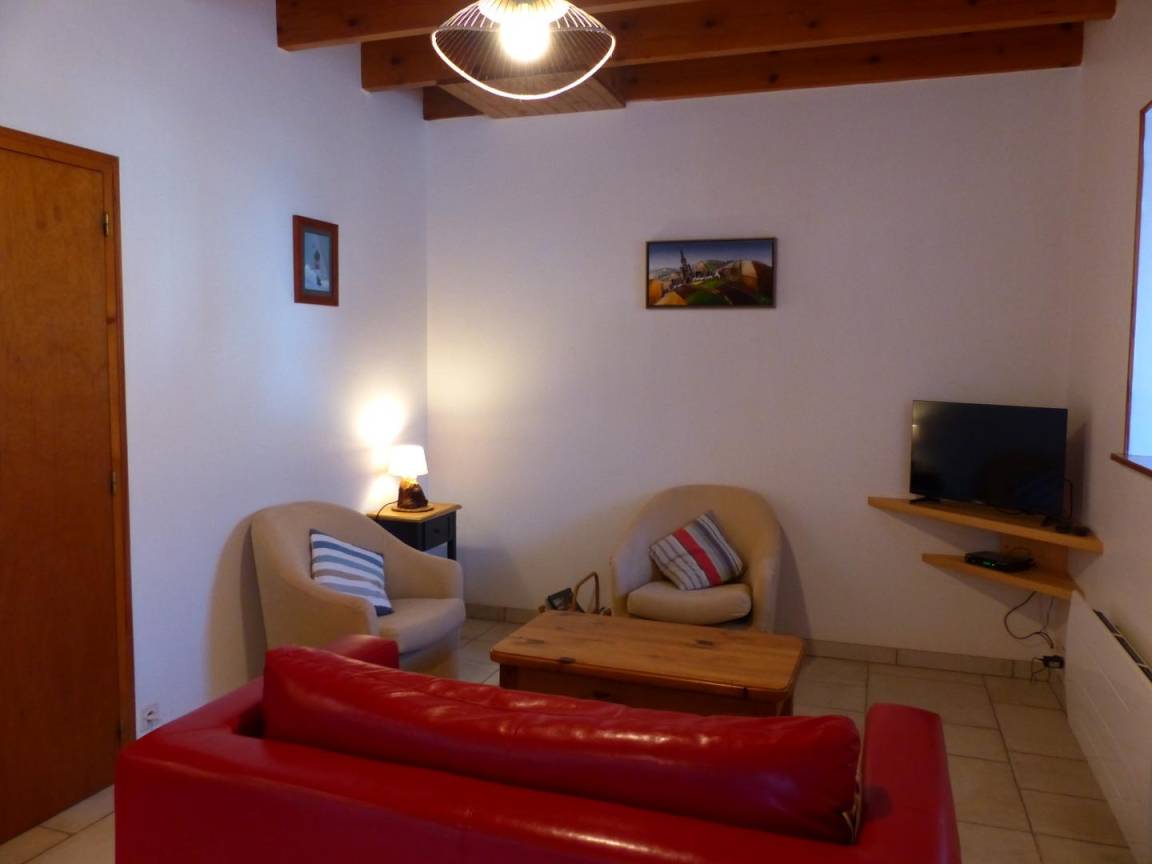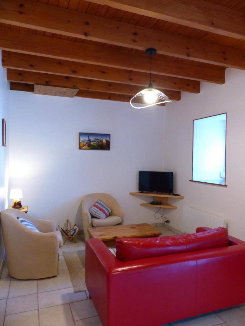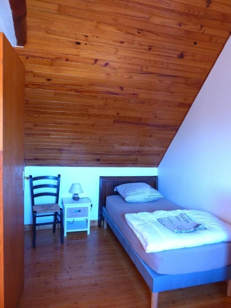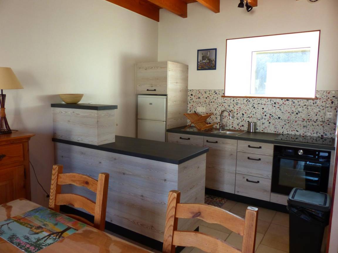 Erdgeschoss: Wohnzimmer mit Essecke, eingebauter Küche, WC. Etage: 2 Schlaf-Zi. (1 Doppelbett, 2 Einzelbetten, 1 Kinderbett aus Holz), Bade-Zi., WC. Gemeinsamer Hof, Rasen, Waschmaschine und Grillplatz gemeinsam mit den anderen Gîtes.
