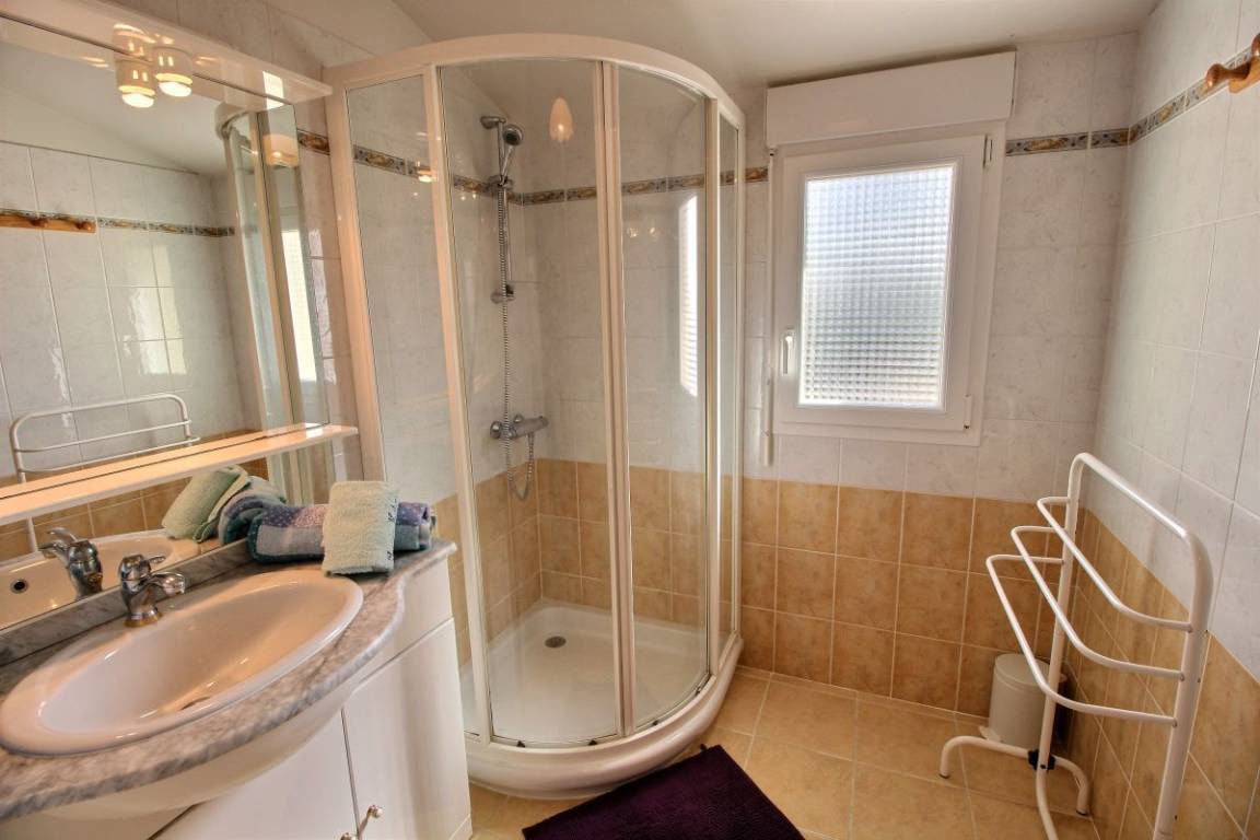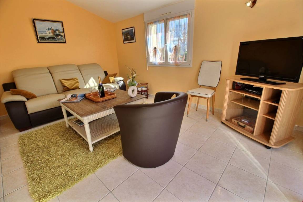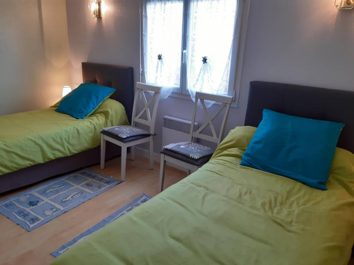 Im Erdgeschoss: eine ausgestattete Küche, die über 2 Stufen erreichbar ist, ein Wohnzimmer, eine Lounge, ein Schlafzimmer mit einem 140x190-Bett, ein Schlafzimmer mit zwei 90x190-Betten, ein Badezimmer mit Dusche, separates WC.