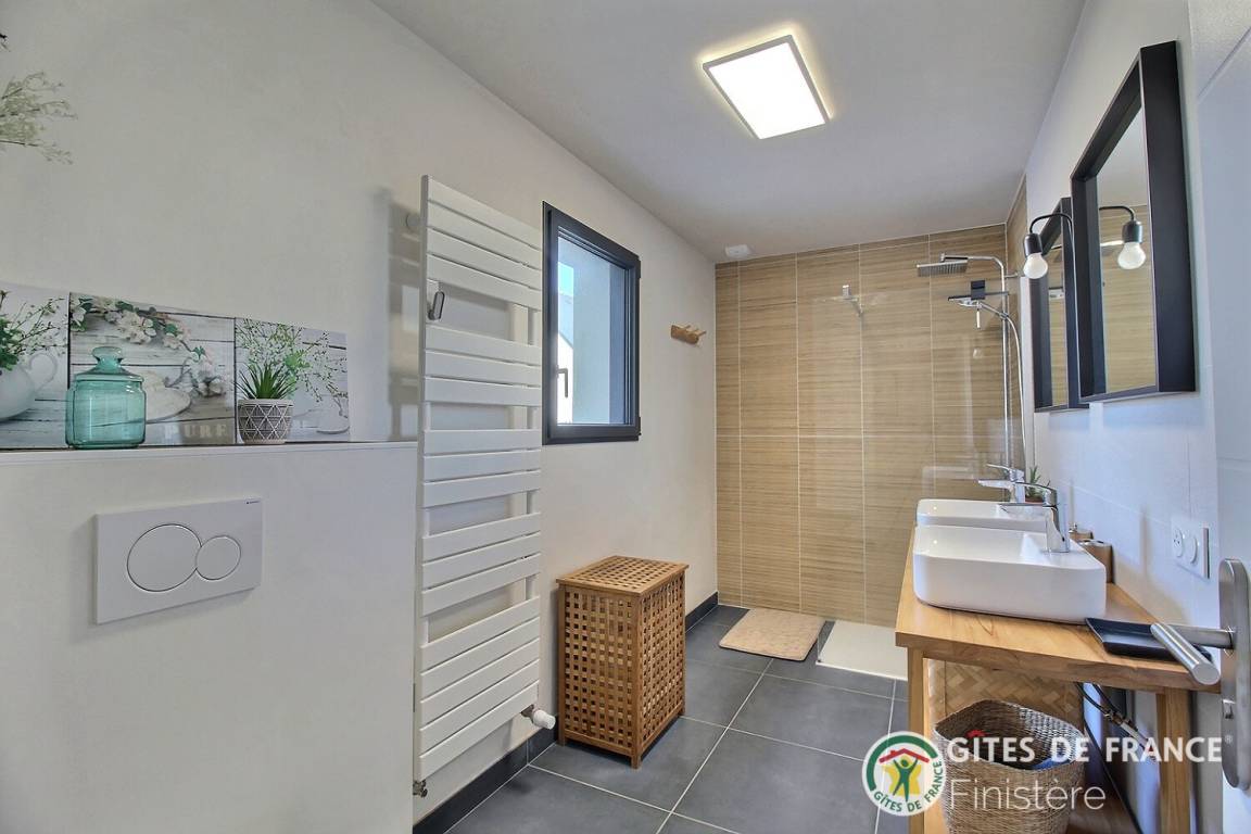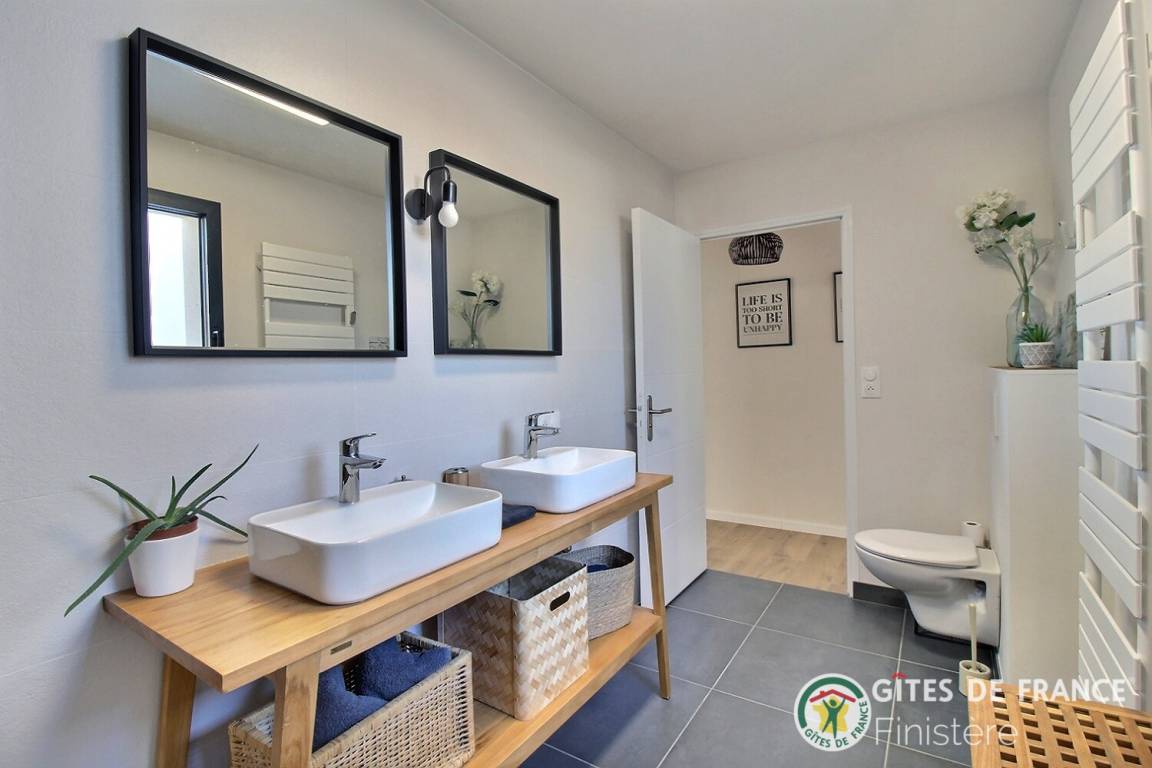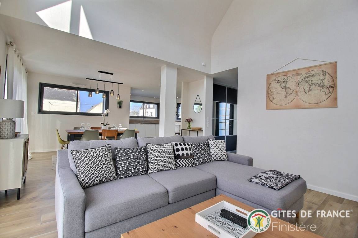 „Excellent séjour dans une magnifique maison neuve très bien agencée (partie jour bien séparée de la partie nuit), parfaitement équipée et propre, très lumineuse et décorée avec beaucoup de goût. Environnement très calme. La côte est sublime et accessible à pied depuis la maison. Merci à Bruno, le propriétaire, pour son accueil et ses conseils sur la région“