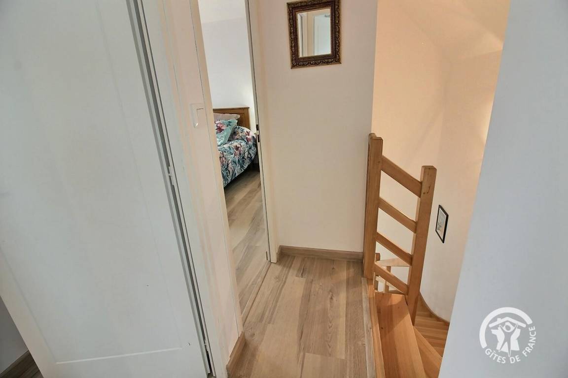 Im Inneren erwartet Sie ein angenehmer und funktionaler Raum. Das kleine Zwischengeschoss lädt zum Entspannen ein und eignet sich ideal für eine Lesepause oder ein Nickerchen abseits von allen. Das Anwesen liegt 150 Meter von einer Bio-Gärtnerei entfernt.