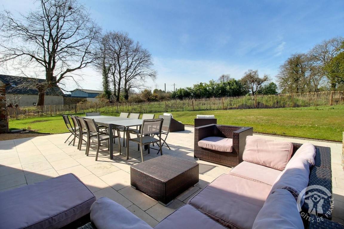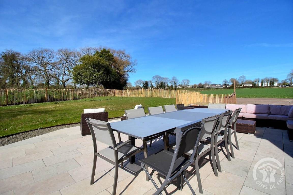 eine 90 m² große Terrasse, ein 400 m² großer privater umzäunter Garten.