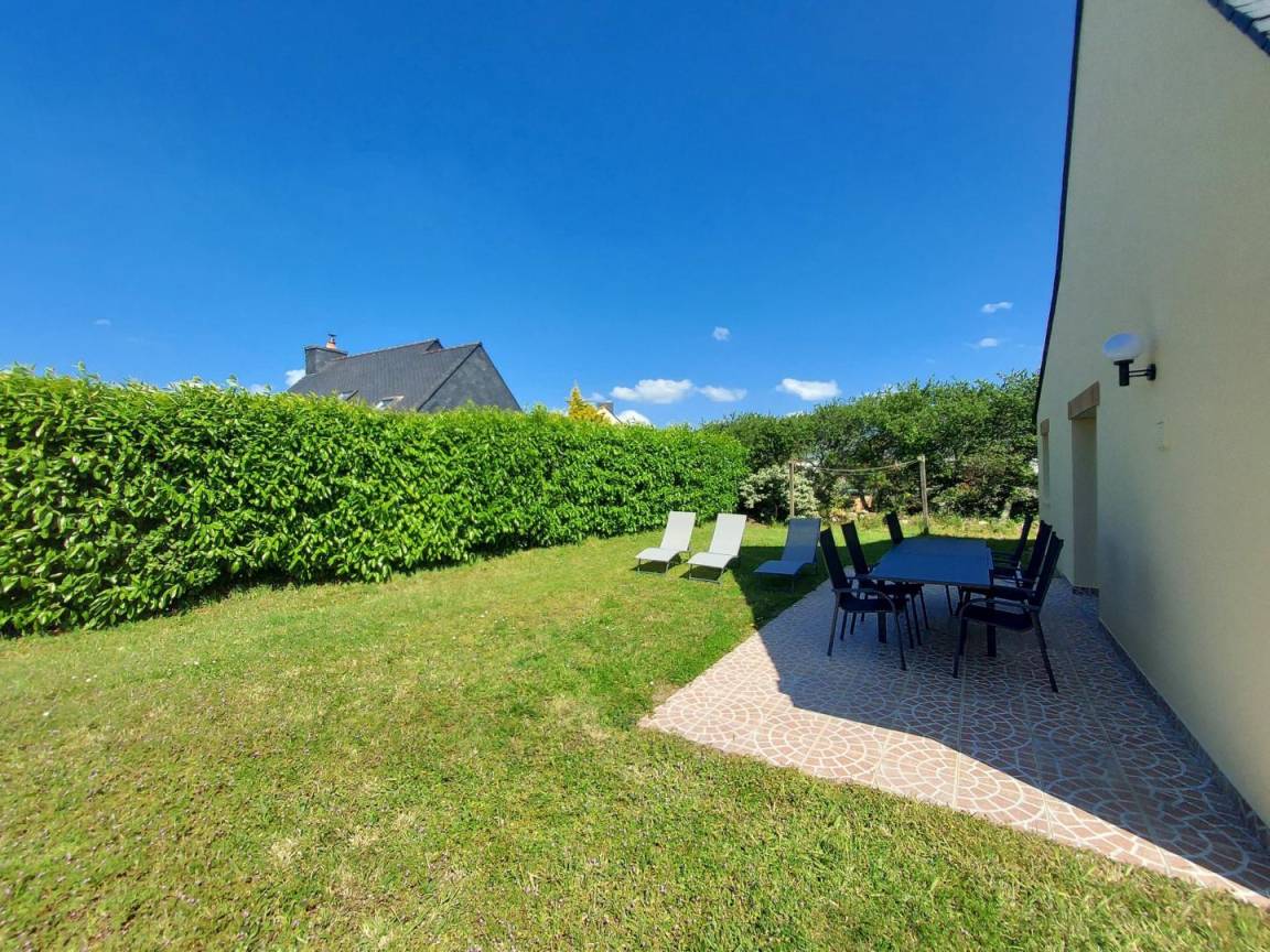 - Draußen: ein großer umzäunter Garten von 450 m², eine Terrasse und 2 private Parkplätze vor dem Haus.