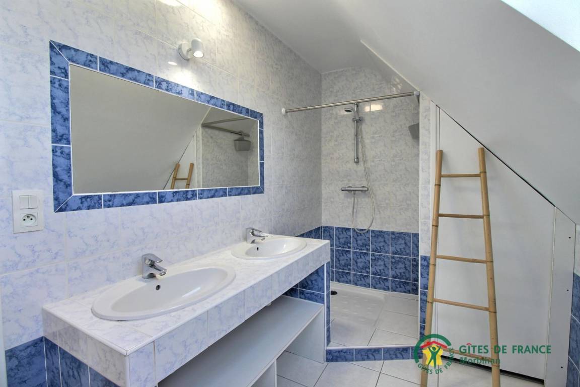 - Obergeschoss: 2 Schlafzimmer (1 140x190-Bett und 2 90x190-Betten), ein Duschbad und eine separate Toilette.