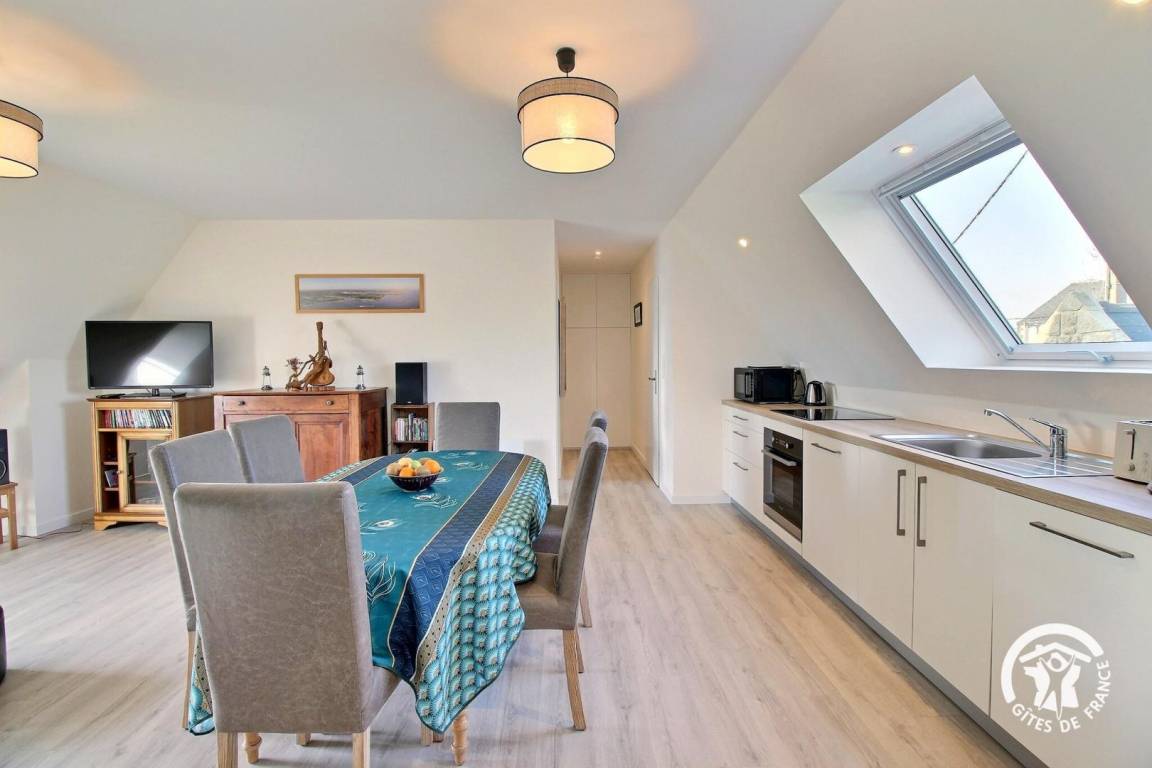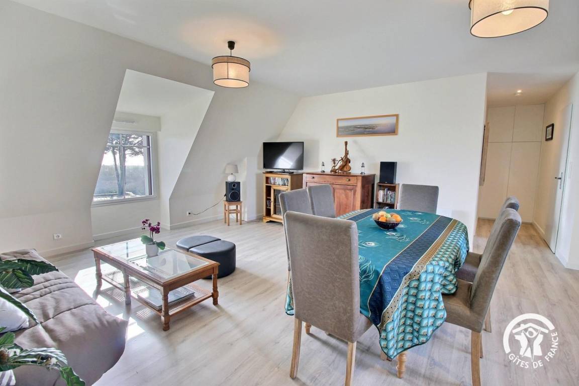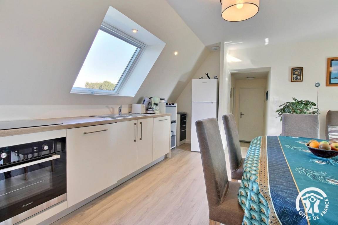 „Gîte très bien situé pour visiter les nombreux sites aux alentours. très bon accueil des propriétaires. Le gîte est neuf, confortable et bien équipé. il est lumineux et permet de profiter d'une vue imprenable sur la baie de Quiberon. Nous avons apprécié le calme du quartier et de la propriété dans laquelle se trouve l'appartement. A conseiller sans hésitation.“