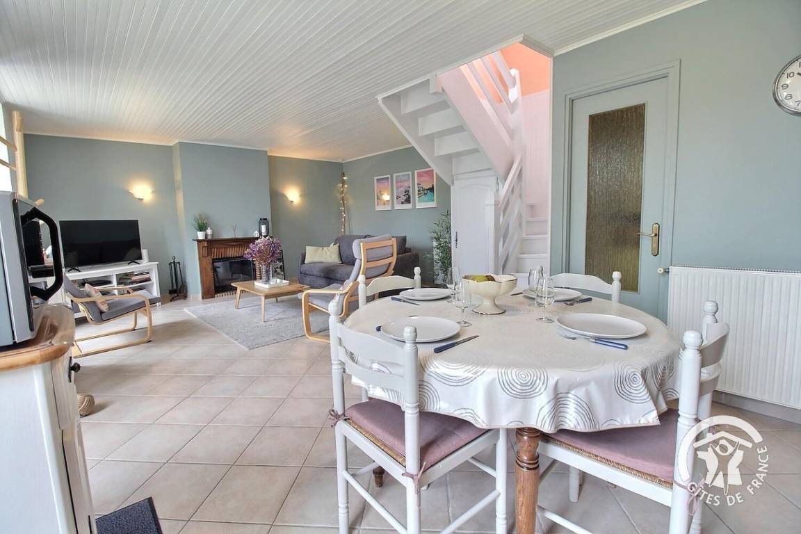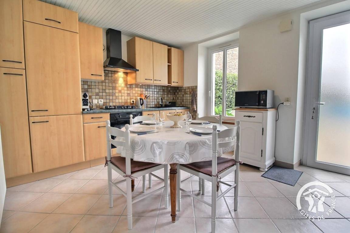 Gite adjoins another dwelling in a village 2 km from Plouharnel. Living room / kitchen corner / sitting area with enclosed fireplace. 2 bedrooms (1 double bed, 1 single bed), shower room / wc , wc. Gas-fired central heating. Terrace, garden furniture,bbq. Private garden with bike shelter. The beach at Sainte-Barbe is used by surfers all year round. Short stays 4 nights minimum. Parking area near gite (about 20 m).