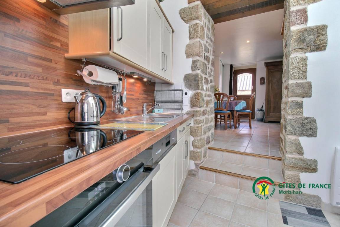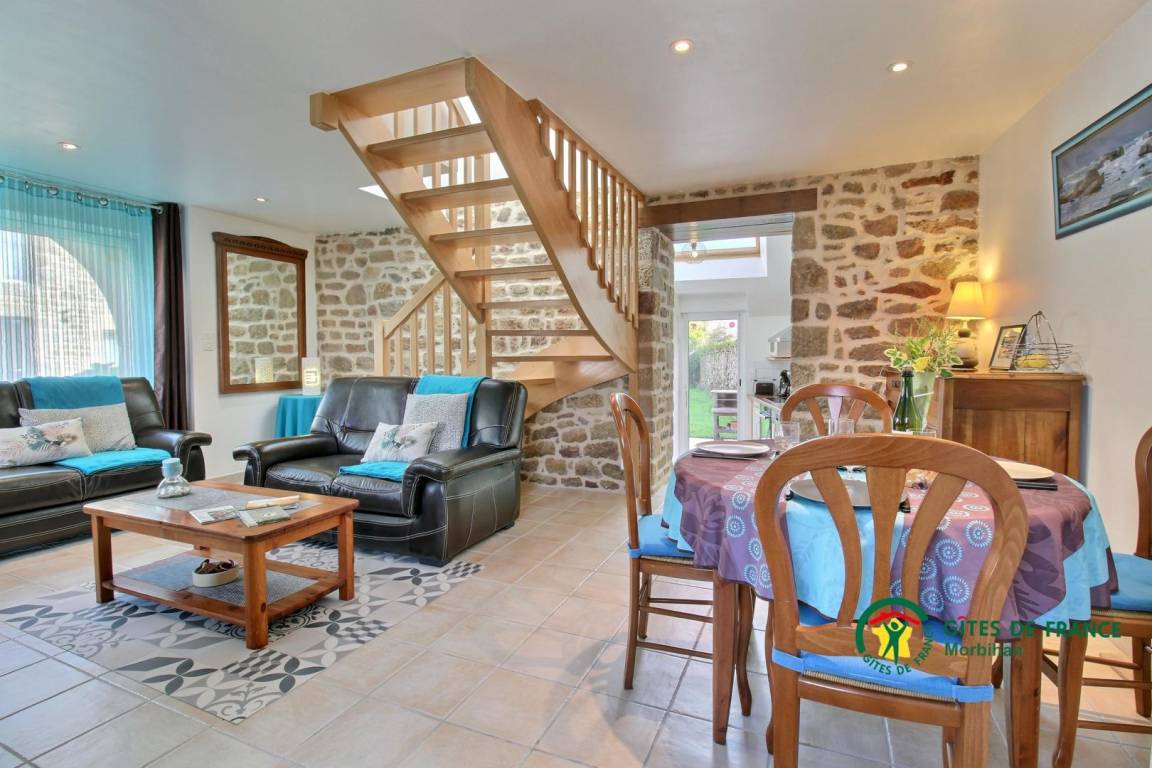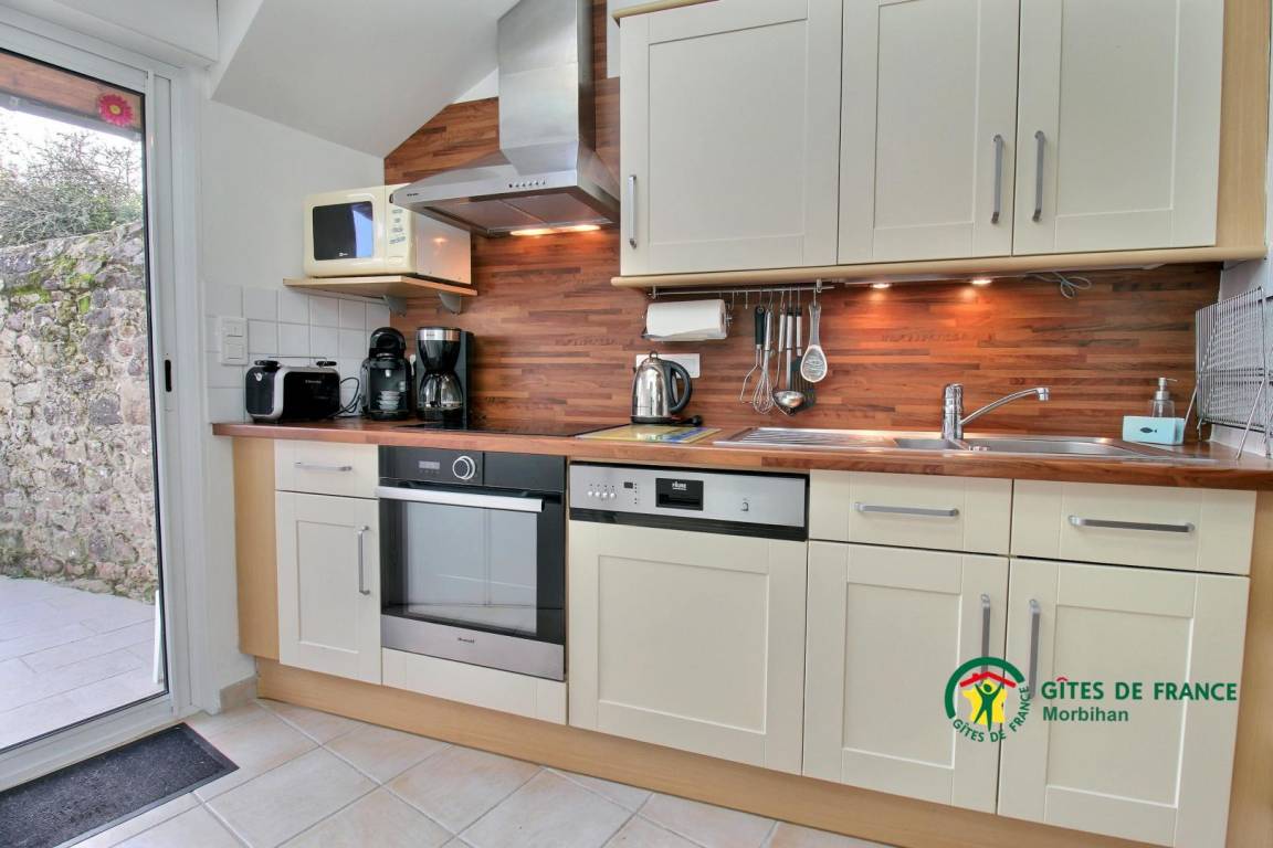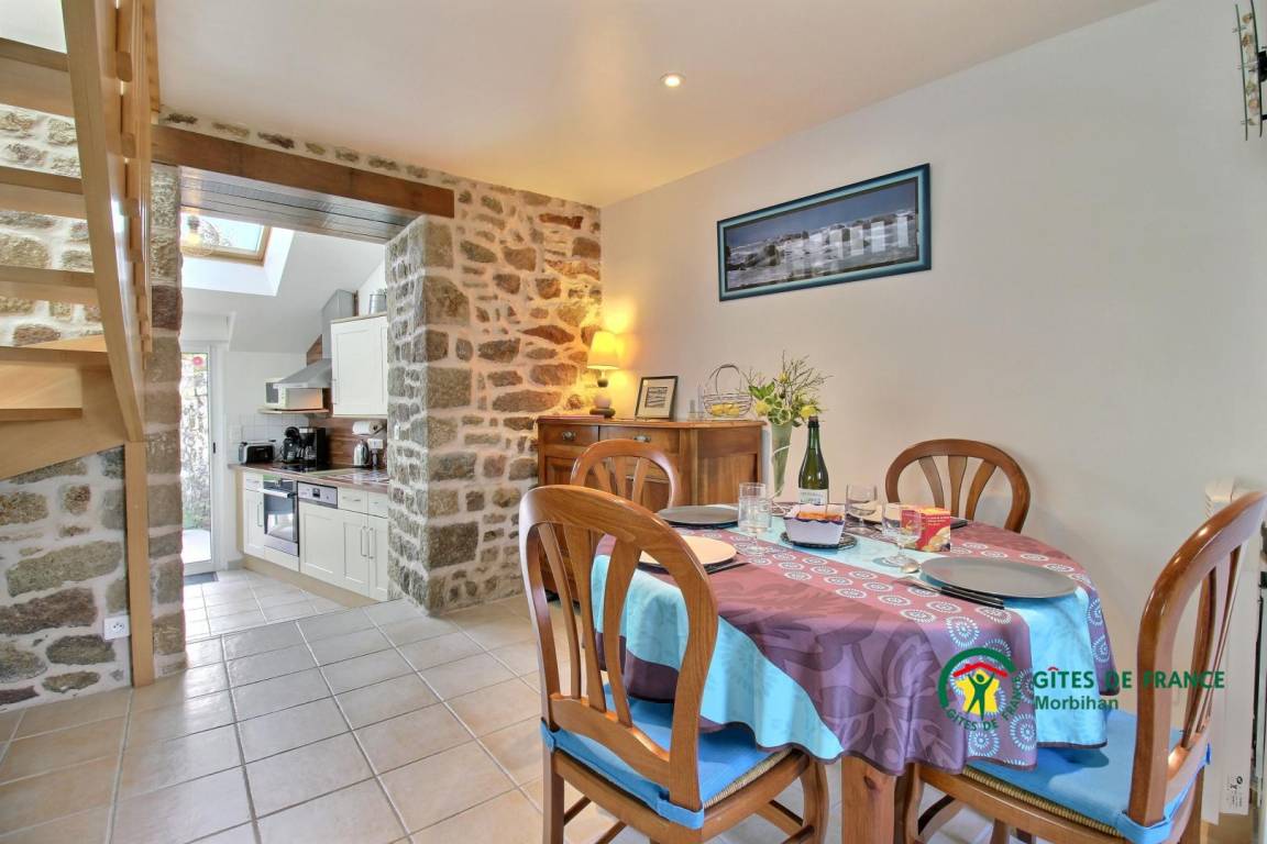 Detached gite in a village ( No Through Road ) 1 km from Plouharnel and 3.5 from Carnac. Kitchen, living room / sitting area (DVD player) 2 bedrooms ( 1 double bed of 200,1 single, 1 child bed of 90, 1 child bed) Shower room, 2 wc, Electric heating. Private courtyard and garden 200 m². Terrace, garden furniture, bbq.