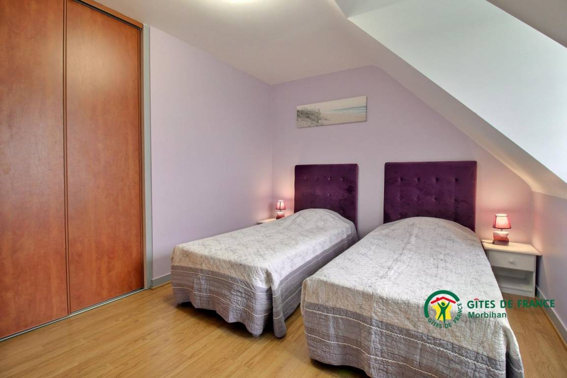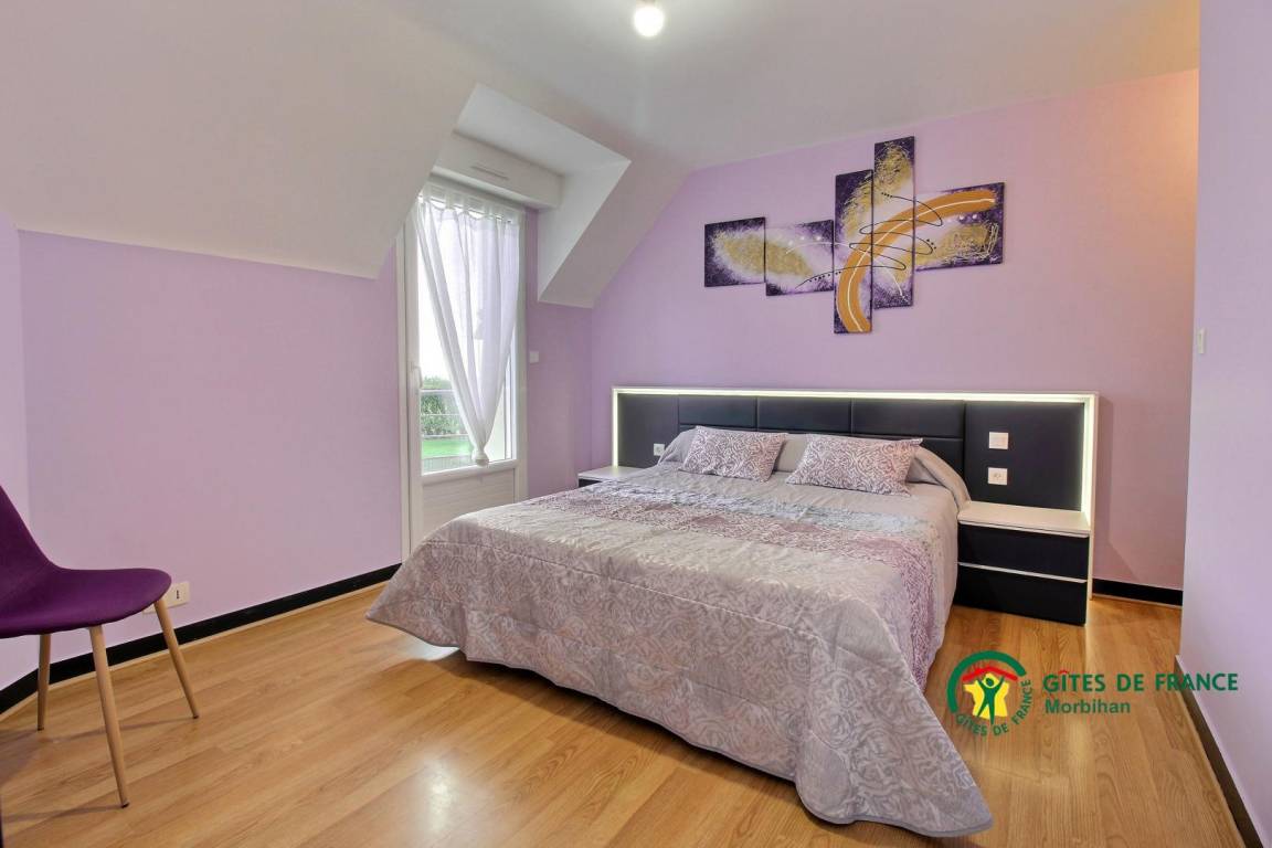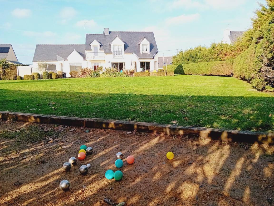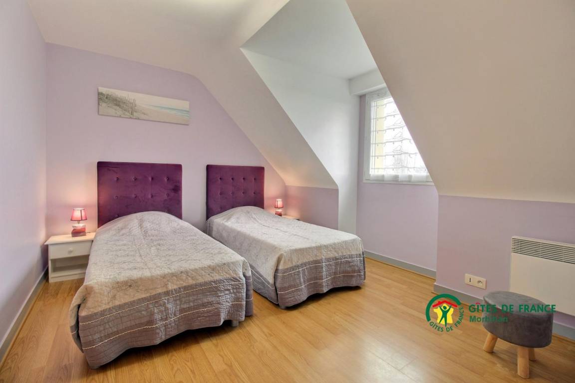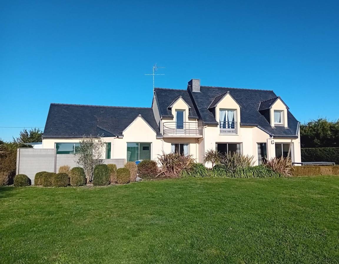 Detached gite 0.8 km from Plouhinec, along the road leading to the beaches. Living room/kitchen corner/sitting area (DVD, video player), mezzanine, 4 bedrooms (2 double beds - 1 is 160x200 -, 4 single beds, 1 child bed), shower room, bathroom, 2 wcs, electric heating. Garage, Garden 2000m², terrace, garden furniture, BBQ. Internet access. Modern house with an overview on the ocean from upstairs and a cosy interior, near sandy beaches .