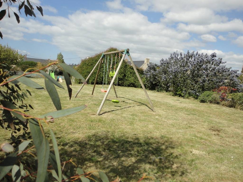 Gite adjoining another one, close to the owner's home 3km from PLOUHINEC. Living room/kitchen corner/sitting area (DVD player). 2 bedrooms (2 double beds, 1 single bed, 1 child bed), bathroom/wc, other wc. Central gaz heating. Terrace, garden furniture, BBQ, shelter for bikes, shared grounds of 630 m² with swings. 3 bikes and a child trailer to rent In a pretty hamlet of granite buildings, with a chapel and its wayside cross. The nearby seaside with a nice sandy beach is another reason to choose this place for your next holiday.