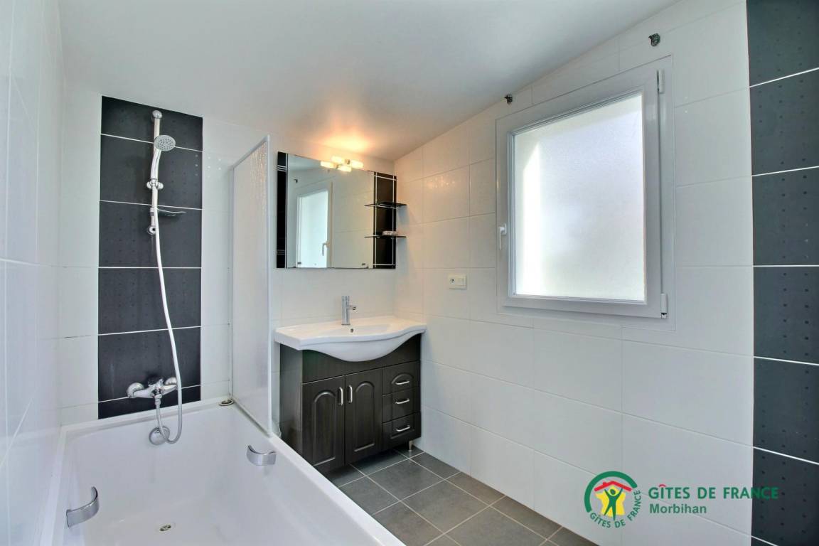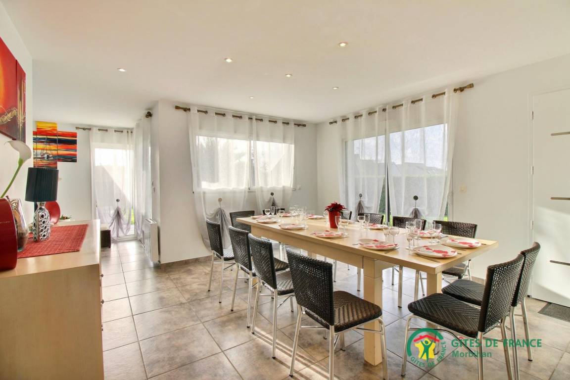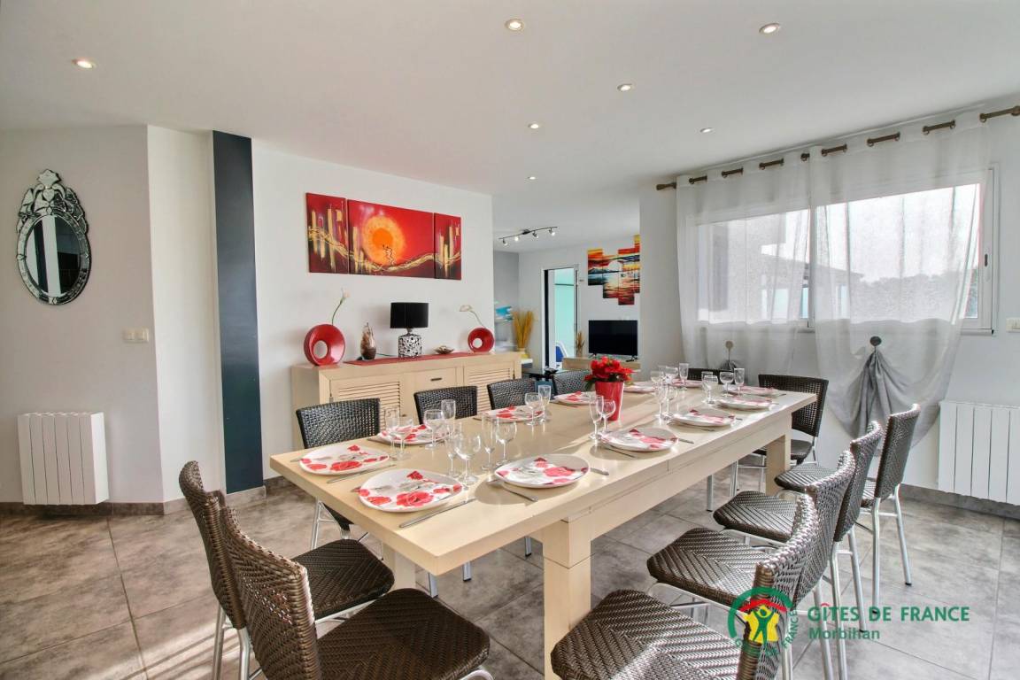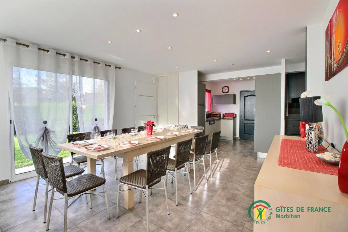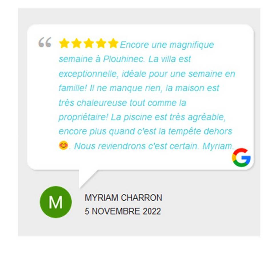 „Village agréable et animé, tout commerce (y compris super marché). Maison de cité spacieuse, bien équipée, espace autour de la maison suffisant, Piscine très agréable quand il fait trop chaud (on reviendra en hiver...). En famille, 7 adulte 1 enfant (6 ans) et deux chiens. Tout les humains et tous les animaux veulent revenir! Seul point à noter: Terrain clos mais absence de portail (je pense que cela est dans le cahier des charges de la cité). On a réglé le problème en mettant une voiture devant l'entrée. Je recommande vivement à toute personne désireuse de passer un excellent séjour dans ce "coin" de Bretagne. Béatrice est à l'écoute sans être trop présente donc parfaite.“