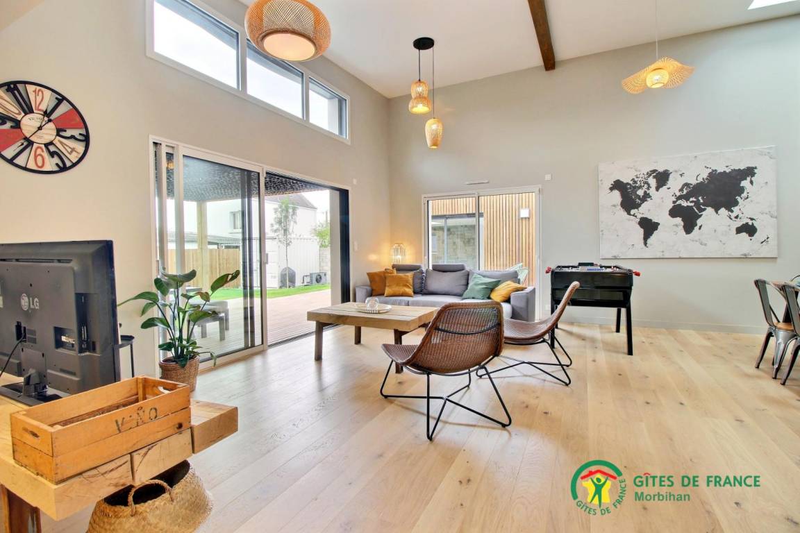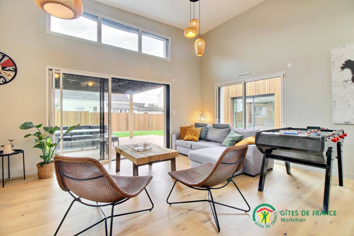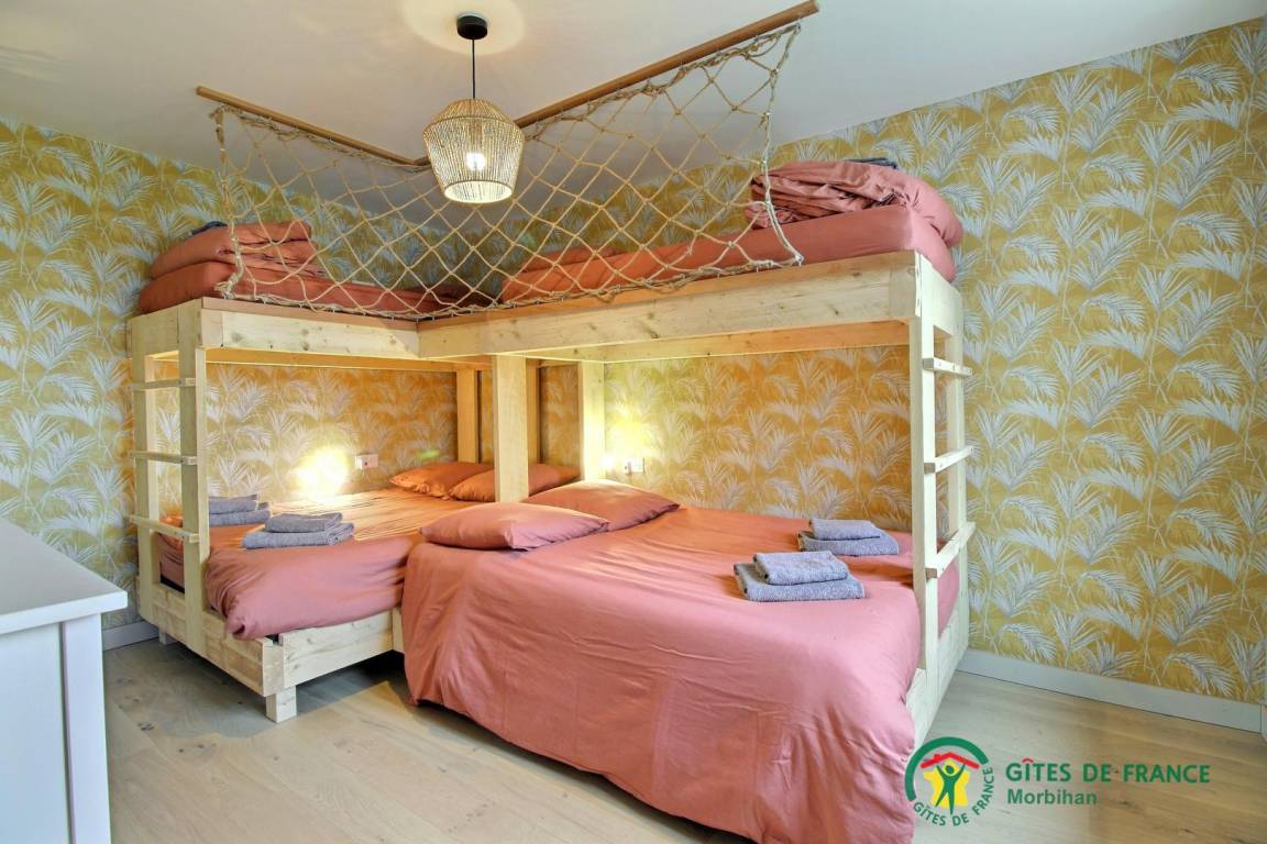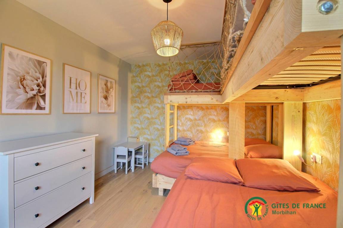 Die Villa bietet Ihnen ein geräumiges Wohnzimmer mit Tischfußball, ein Wohnzimmer und eine voll ausgestattete offene Küche. Das Haus verfügt über 4 Schlafzimmer. Zwei davon sind mit einem 160x200-Doppelbett ausgestattet, ein Schlafsaal mit 2 140x190-Betten und 2 90x190-Etagenbetten, die Kinder begeistern werden, sowie ein Schlafzimmer mit einem 140x190-Schlafsofa. Außerdem finden Sie hier: zwei Badezimmer mit Toiletten, eine separate Toilette und eine Waschküche. Draußen, in einem nicht einsehbaren Garten, genießen Sie eine große, nach Süden ausgerichtete Holzterrasse (teilweise überdacht) mit Gartenmöbeln und Sesseln. Das beheizte Hallenbad von 3x4 m und einer Tiefe von 1,50 m ist ganzjährig geöffnet. Vor dem Haus stehen Ihnen eine Tischtennisplatte und zwei private Parkplätze zur Verfügung. Der Pool ist von der Terrasse und vom Schlafzimmer mit Schlafsofa aus zugänglich.