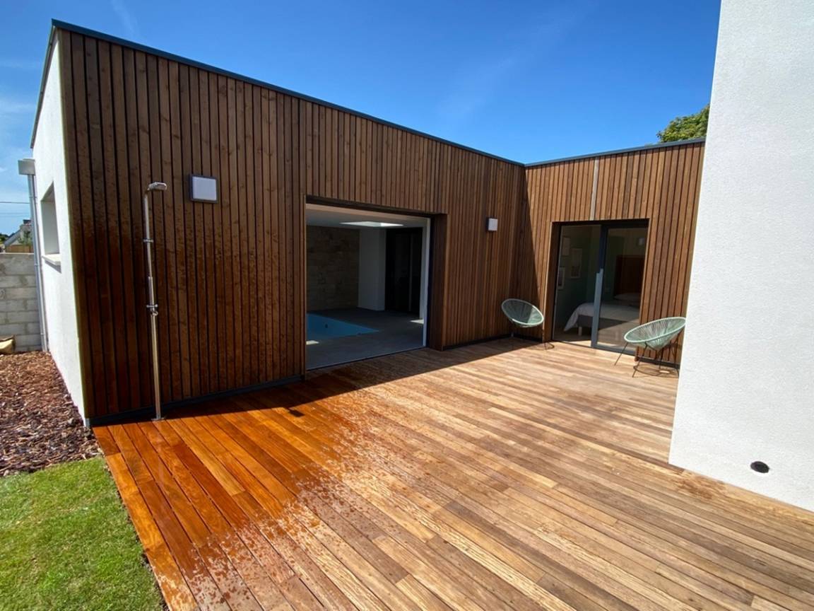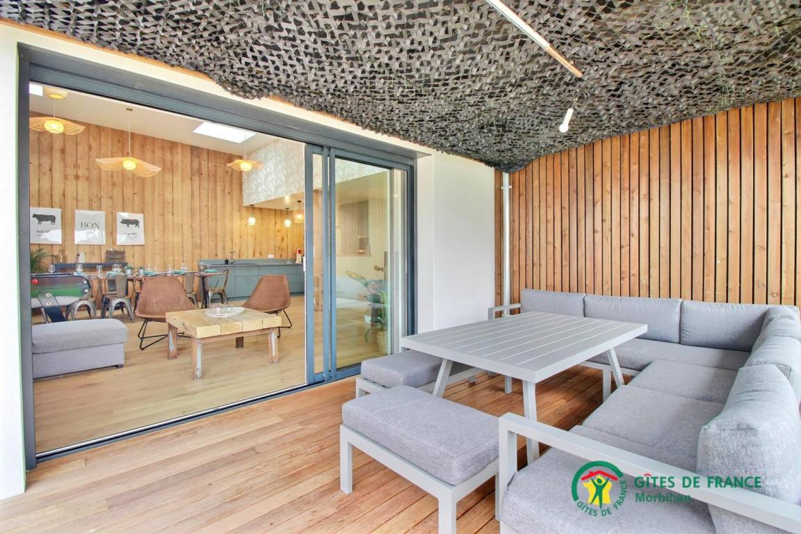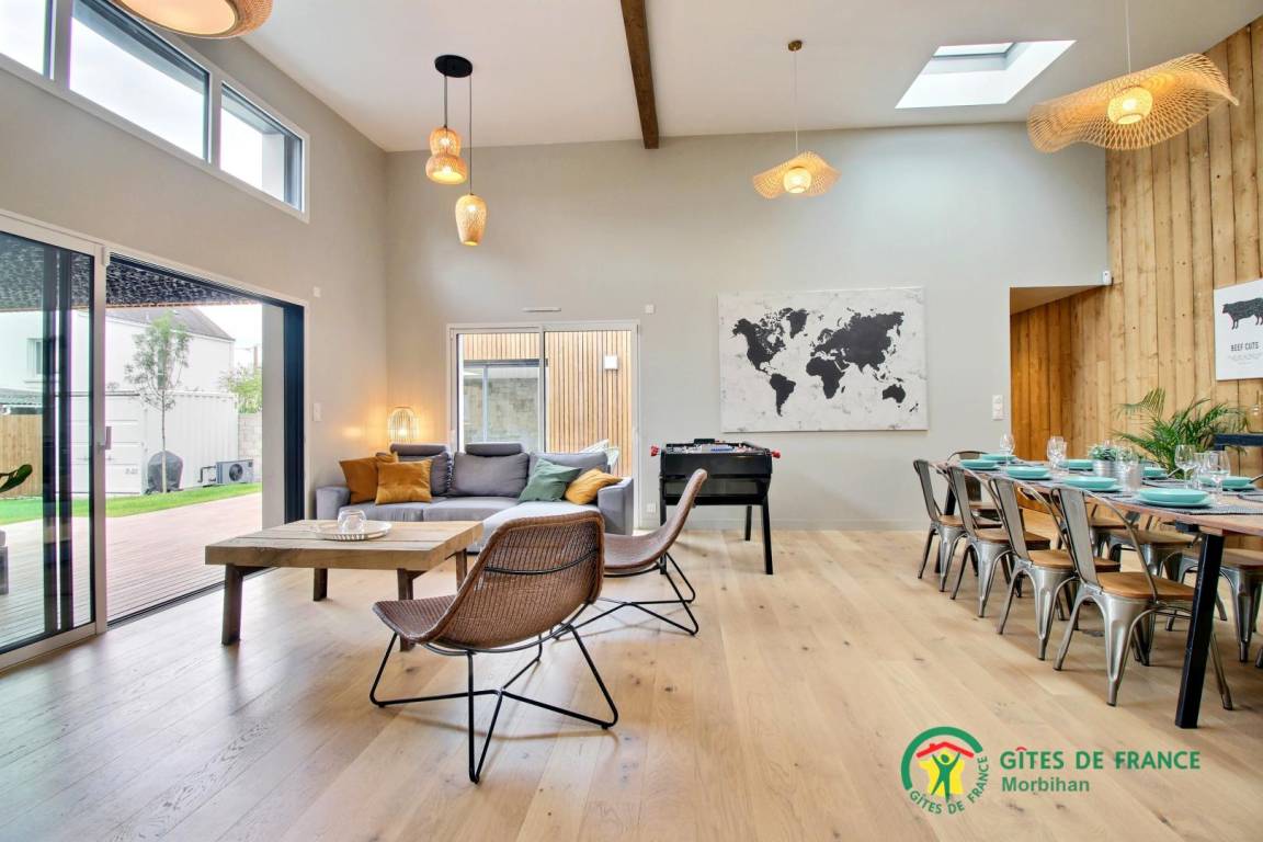 Die Villa bietet Ihnen ein geräumiges Wohnzimmer mit Tischfußball, ein Wohnzimmer und eine voll ausgestattete offene Küche. Das Haus verfügt über 4 Schlafzimmer. Zwei davon sind mit einem 160x200-Doppelbett ausgestattet, ein Schlafsaal mit 2 140x190-Betten und 2 90x190-Etagenbetten, die Kinder begeistern werden, sowie ein Schlafzimmer mit einem 140x190-Schlafsofa. Außerdem finden Sie hier: zwei Badezimmer mit Toiletten, eine separate Toilette und eine Waschküche. Draußen, in einem nicht einsehbaren Garten, genießen Sie eine große, nach Süden ausgerichtete Holzterrasse (teilweise überdacht) mit Gartenmöbeln und Sesseln. Das beheizte Hallenbad von 3x4 m und einer Tiefe von 1,50 m ist ganzjährig geöffnet. Vor dem Haus stehen Ihnen eine Tischtennisplatte und zwei private Parkplätze zur Verfügung. Der Pool ist von der Terrasse und vom Schlafzimmer mit Schlafsofa aus zugänglich.