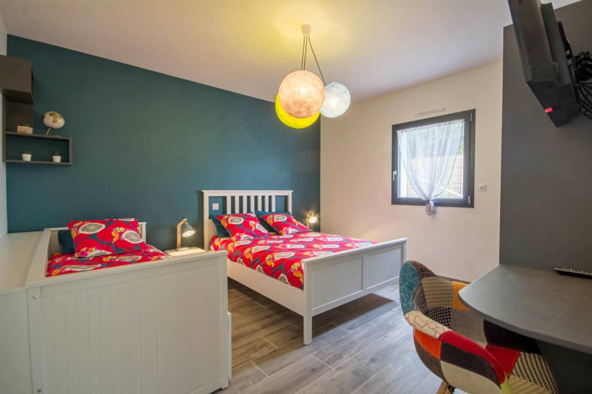 „Séjour très agréable. Accueil parfait. Location très bien équipée avec notamment le nécessaire pour bébés (lits, chaises..) qui nous a été bien utile...Et le petit plus, la piscine très agréable avec son accès direct du logement. Je recommande.“